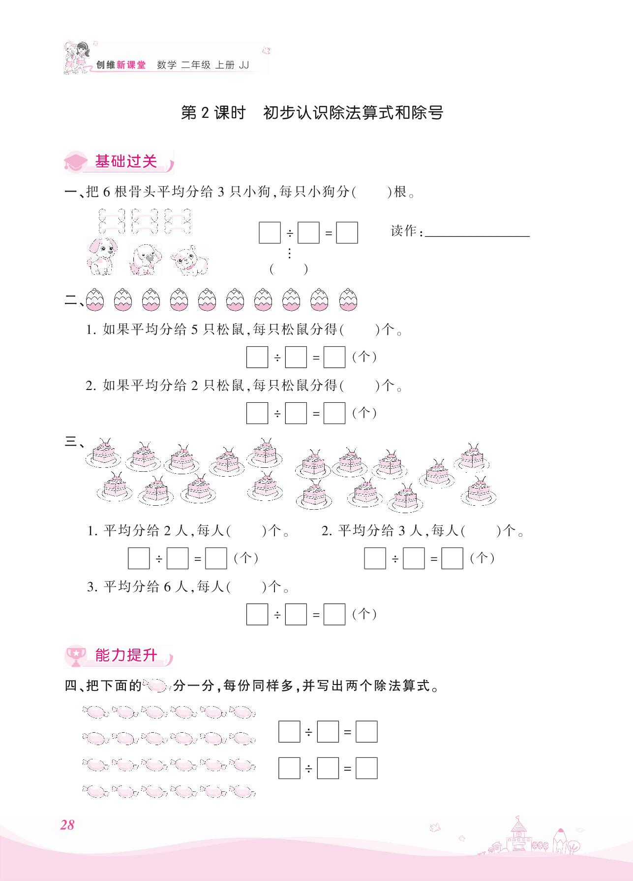 2021上册二年级数学冀教版 五 表内除法(一) 1. 认识除法——第2课时 初步认识除法算式和除号