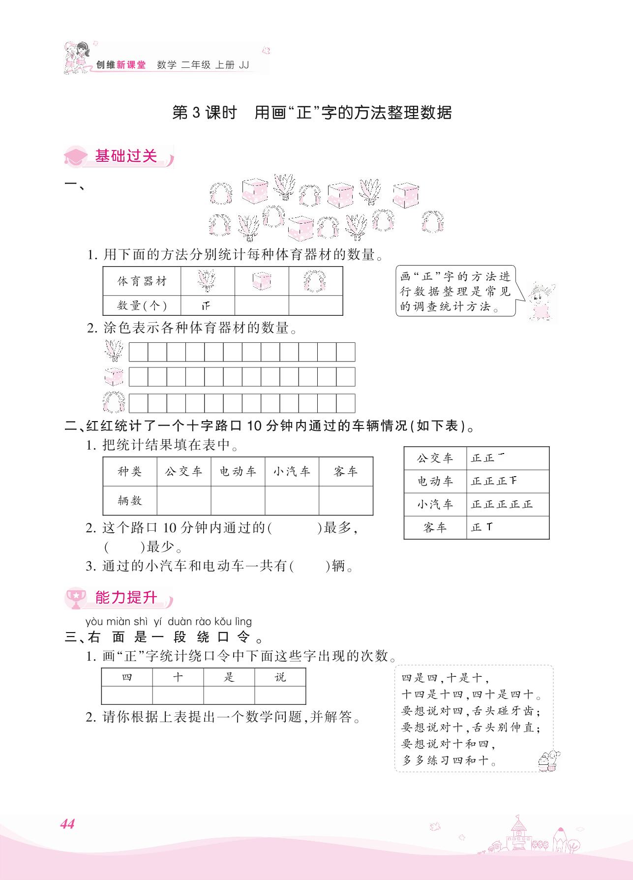 2021上册二年级数学冀教版 六 象形统计图和统计表——第3课时 用画“正”字的方法整理数据