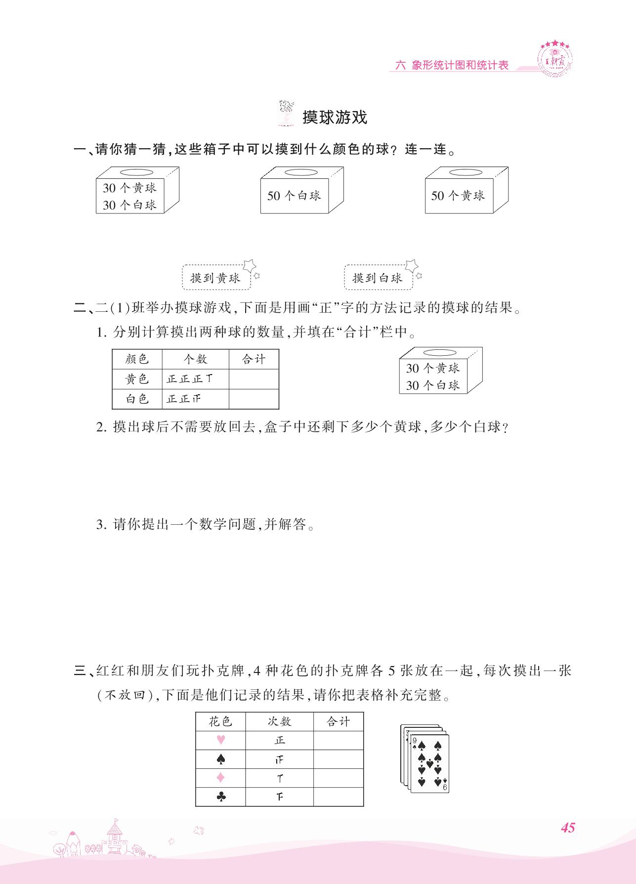 2021上册二年级数学冀教版 六 象形统计图和统计表——摸球游戏