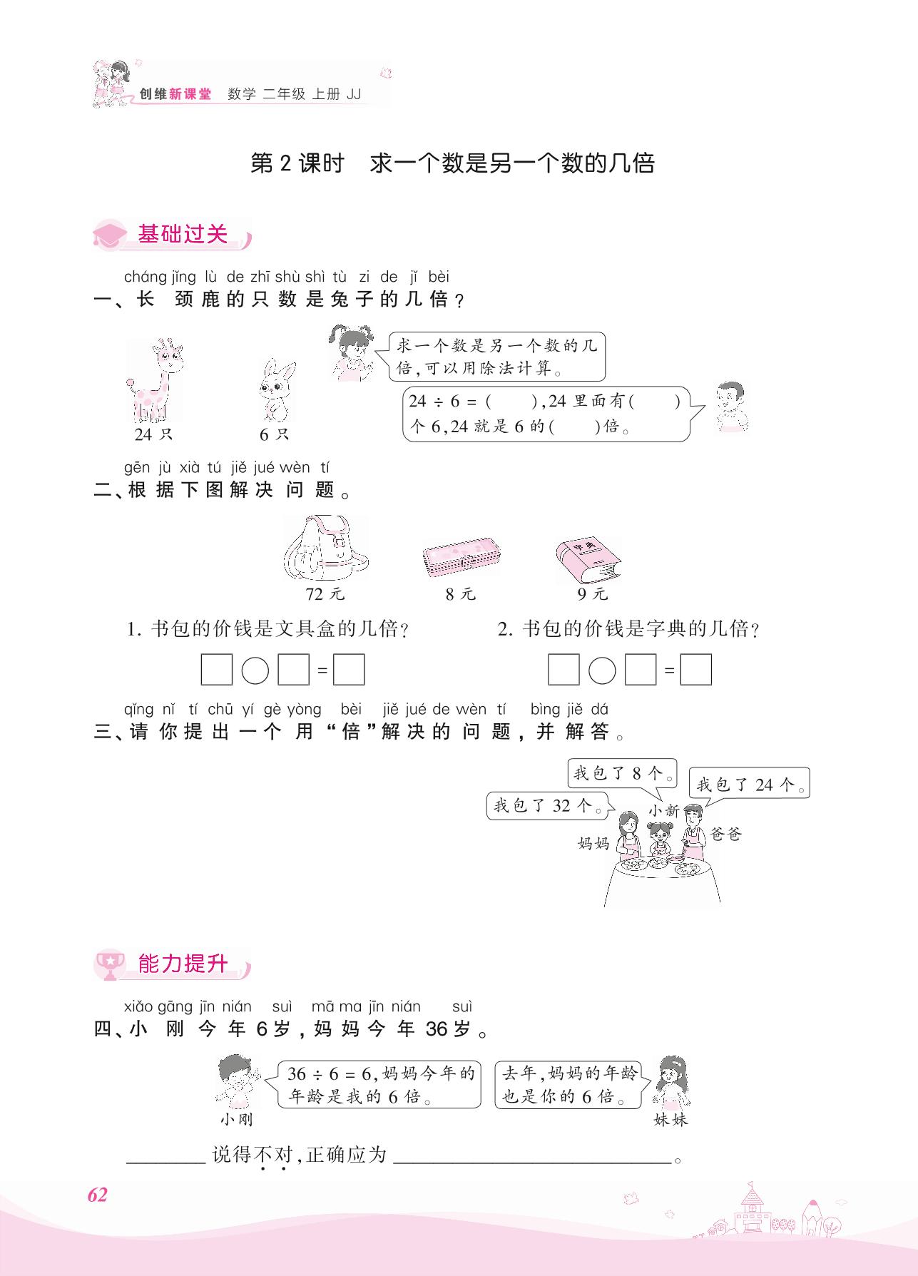 2021上册二年级数学冀教版 七 表内乘法和除法(二) 3. 倍的认识——第2课时 求一个数是另一个数的几倍