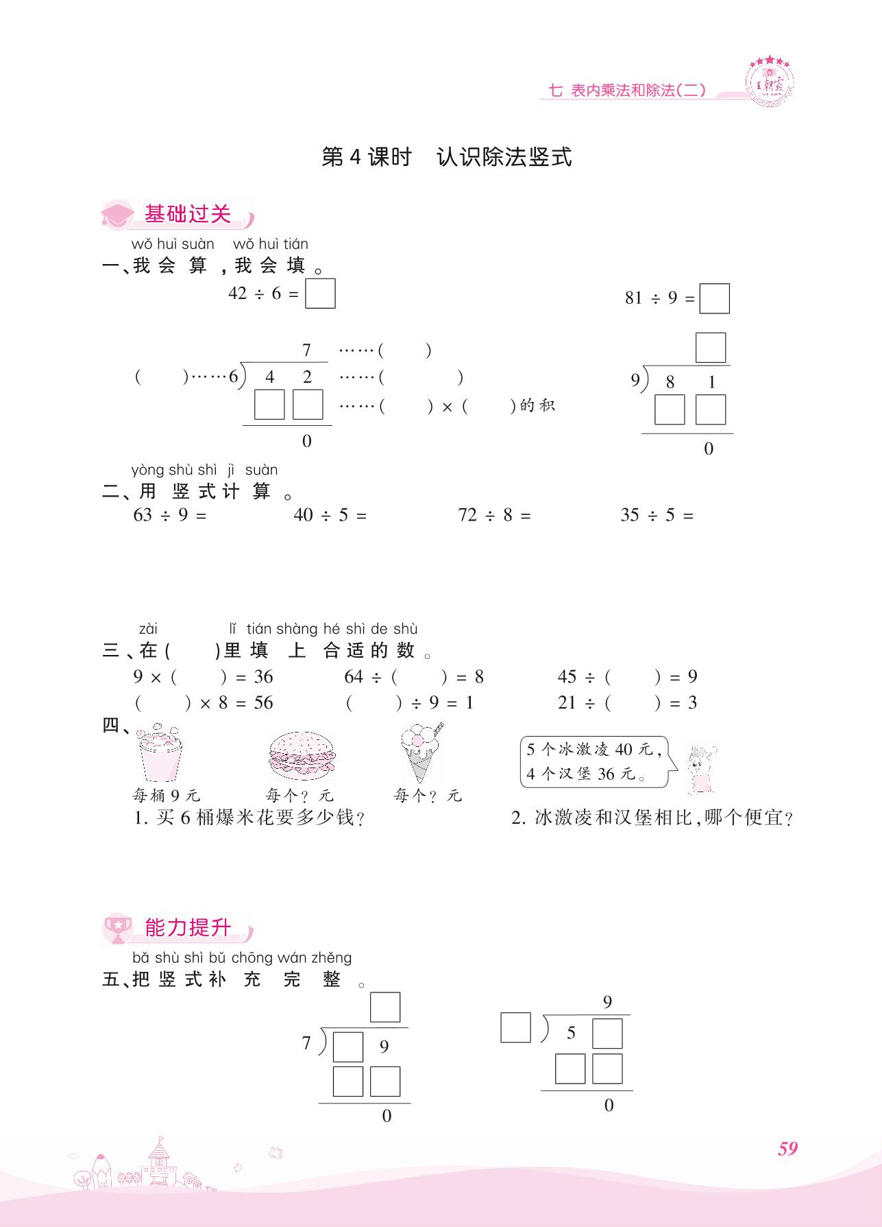 2021上册二年级数学冀教版 七 表内乘法和除法(二) 2. 用7、8、9的乘法口诀求商——第4课时 认识除法竖式