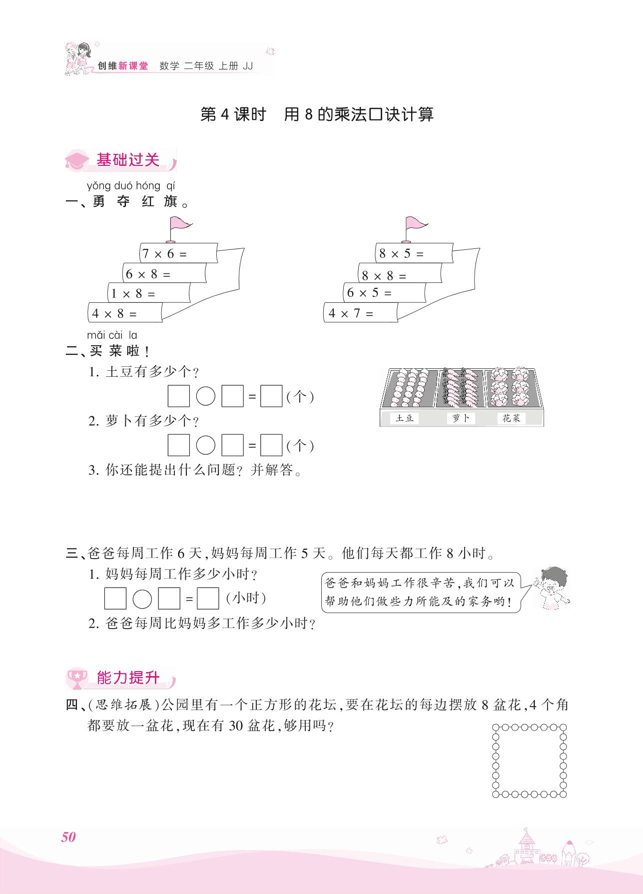 2021上册二年级数学冀教版 七 表内乘法和除法(二) 1. 7、8、9的乘法口诀——第4课时 用8的乘法口诀计算