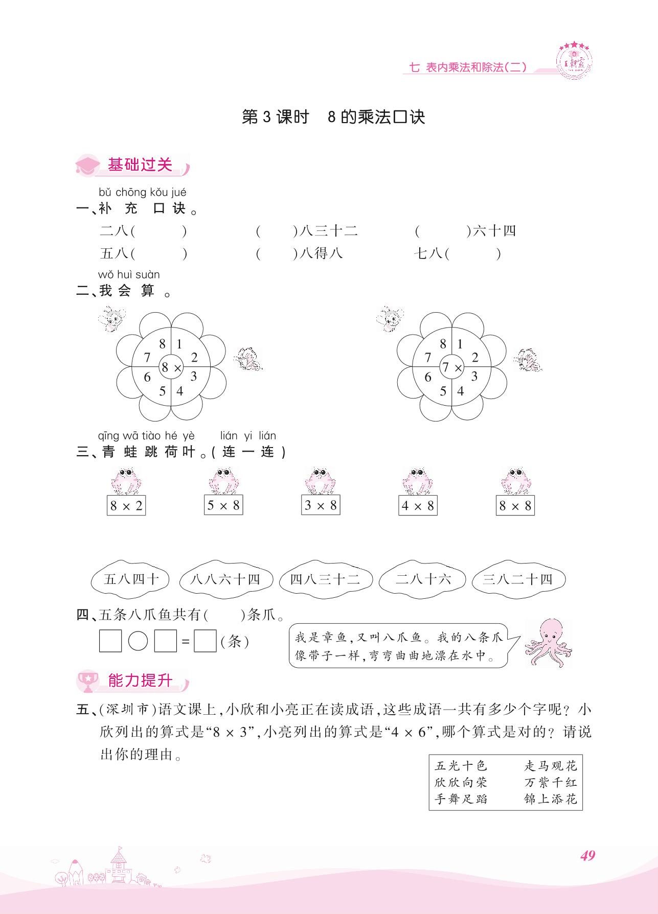 2021上册二年级数学冀教版 七 表内乘法和除法(二) 1. 7、8、9的乘法口诀——第3课时 8的乘法口诀