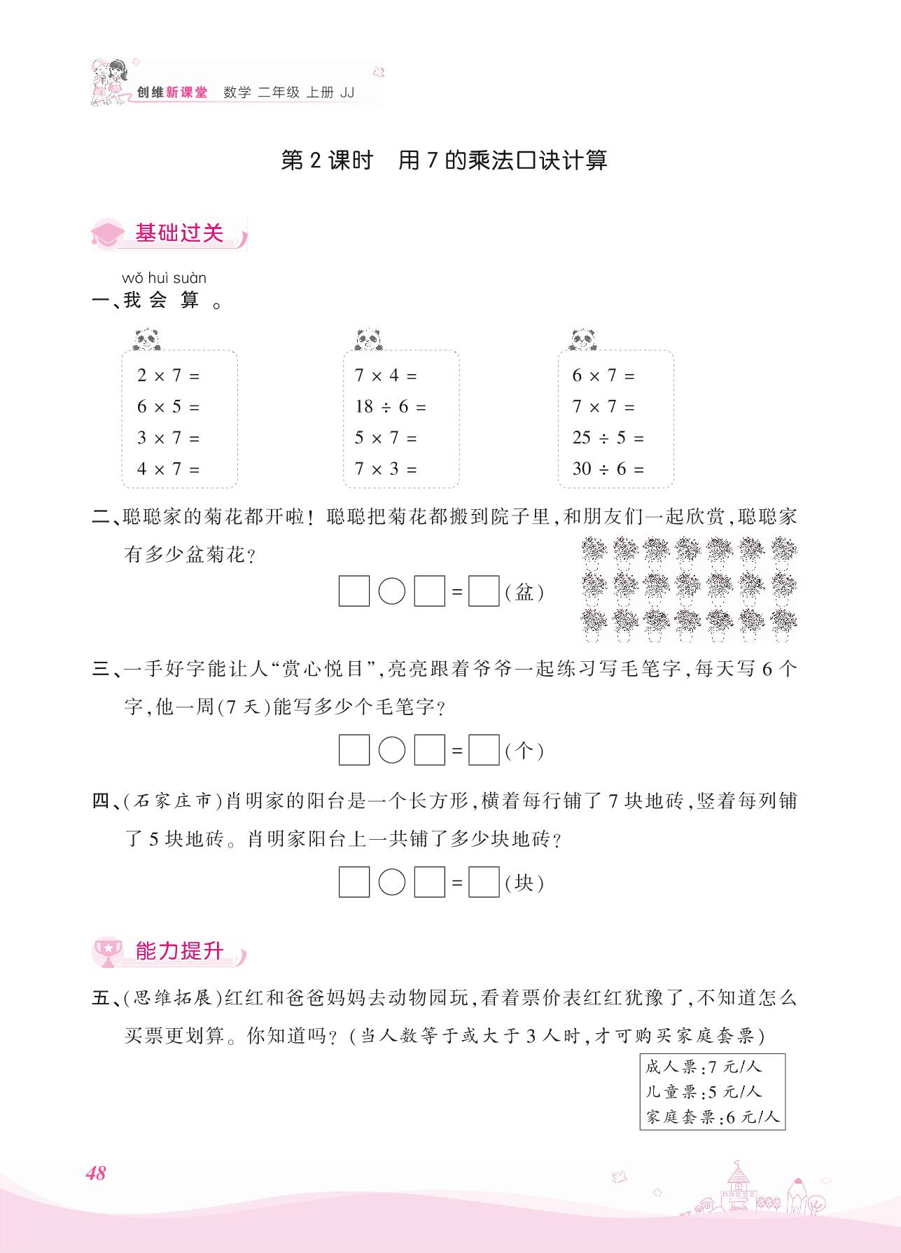 2021上册二年级数学冀教版 七 表内乘法和除法(二) 1. 7、8、9的乘法口诀——第2课时 用7的乘法口诀计算