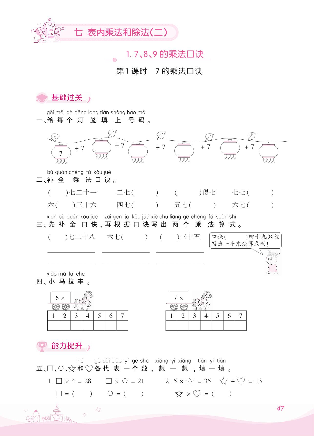2021上册二年级数学冀教版 七 表内乘法和除法(二) 1. 7、8、9的乘法口诀——第1课时 7的乘法口诀