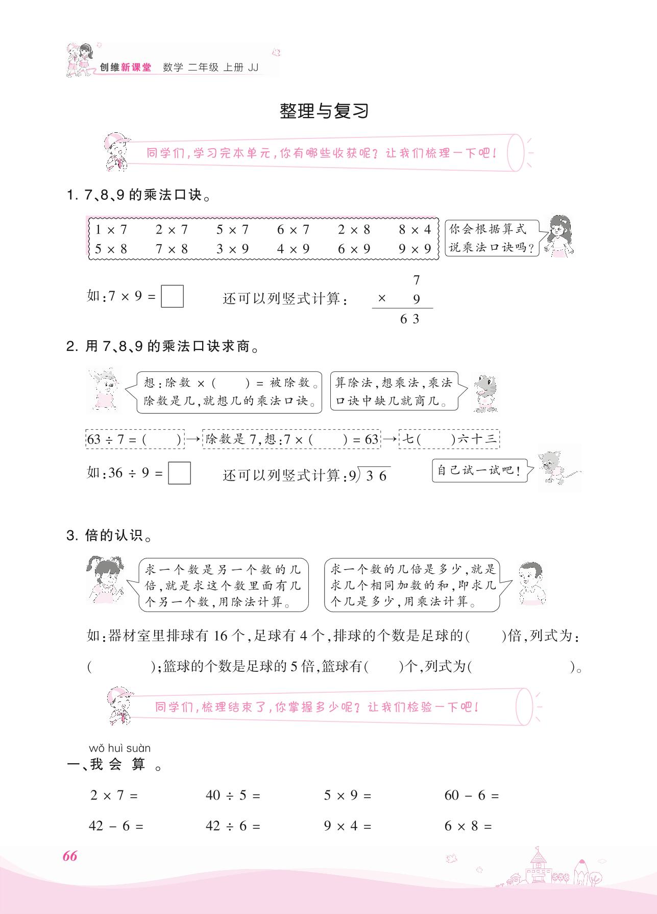 2021上册二年级数学冀教版 七 表内乘法和除法(二)——整理与复习