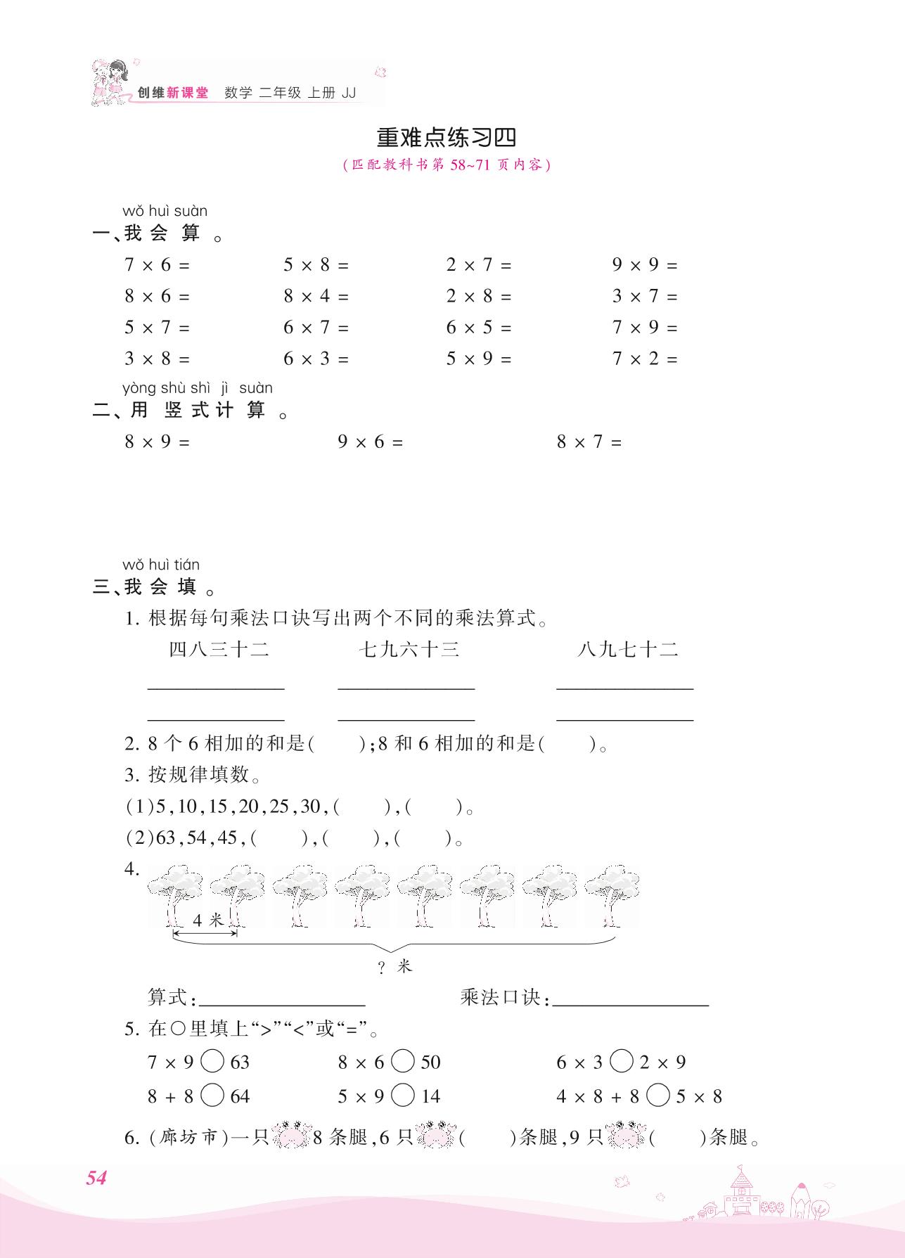 2021上册二年级数学冀教版 七 表内乘法和除法(二)——重难点练习四