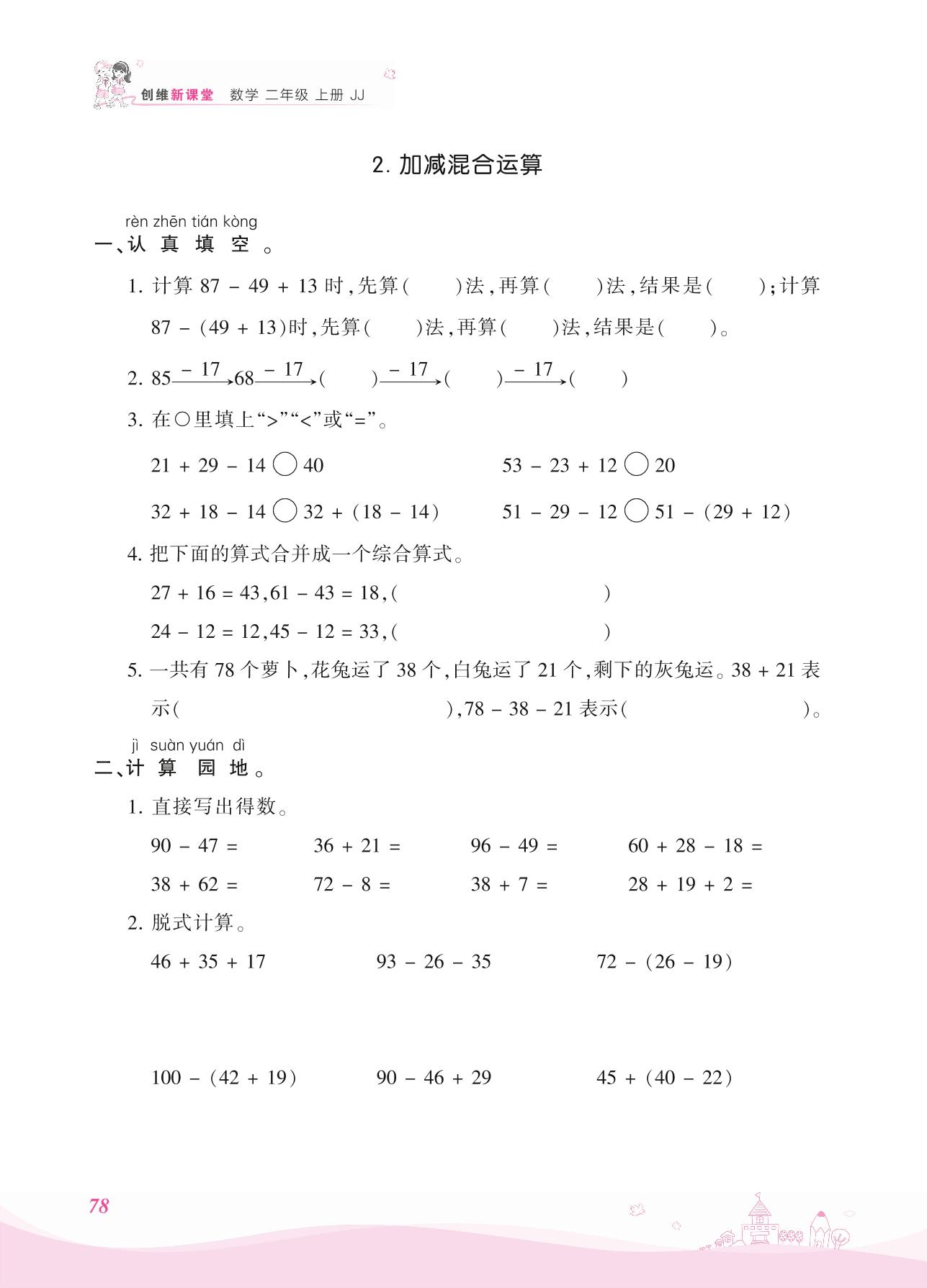 2021上册二年级数学冀教版 整理与评价——2. 加减混合运算