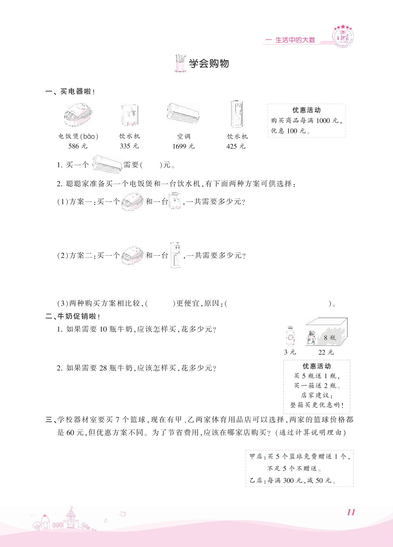 2021上册三年级数学冀教版 一 生活中的大数——学会购物