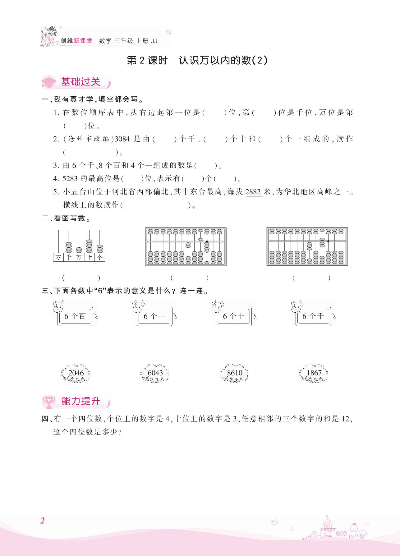 2021上册三年级数学冀教版 一 生活中的大数——第2课时 认识万以内的数(2)