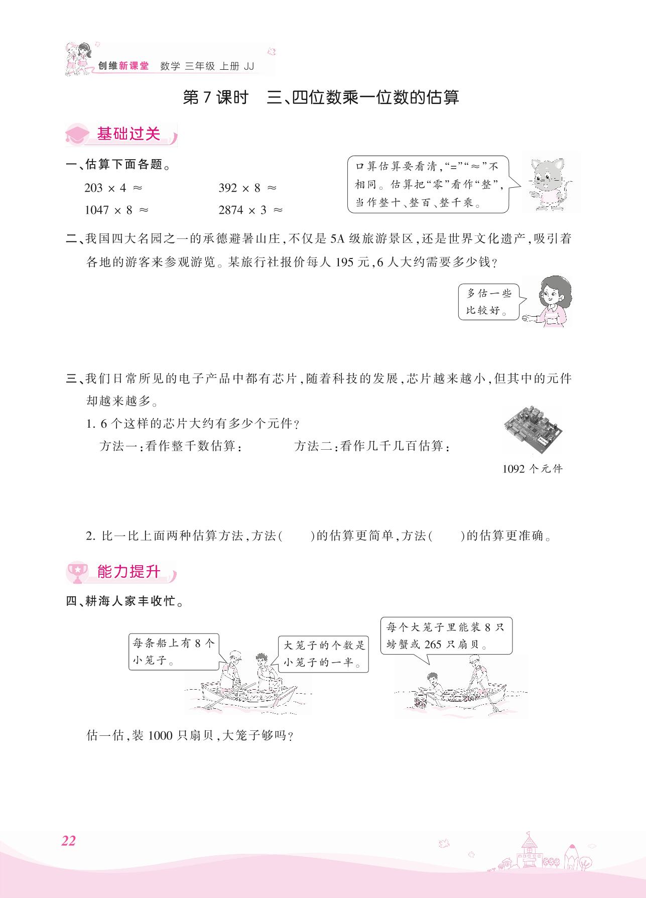 2021上册三年级数学冀教版 二 两、三位数乘一位数——第7课时 三、四位数乘一位数的估算