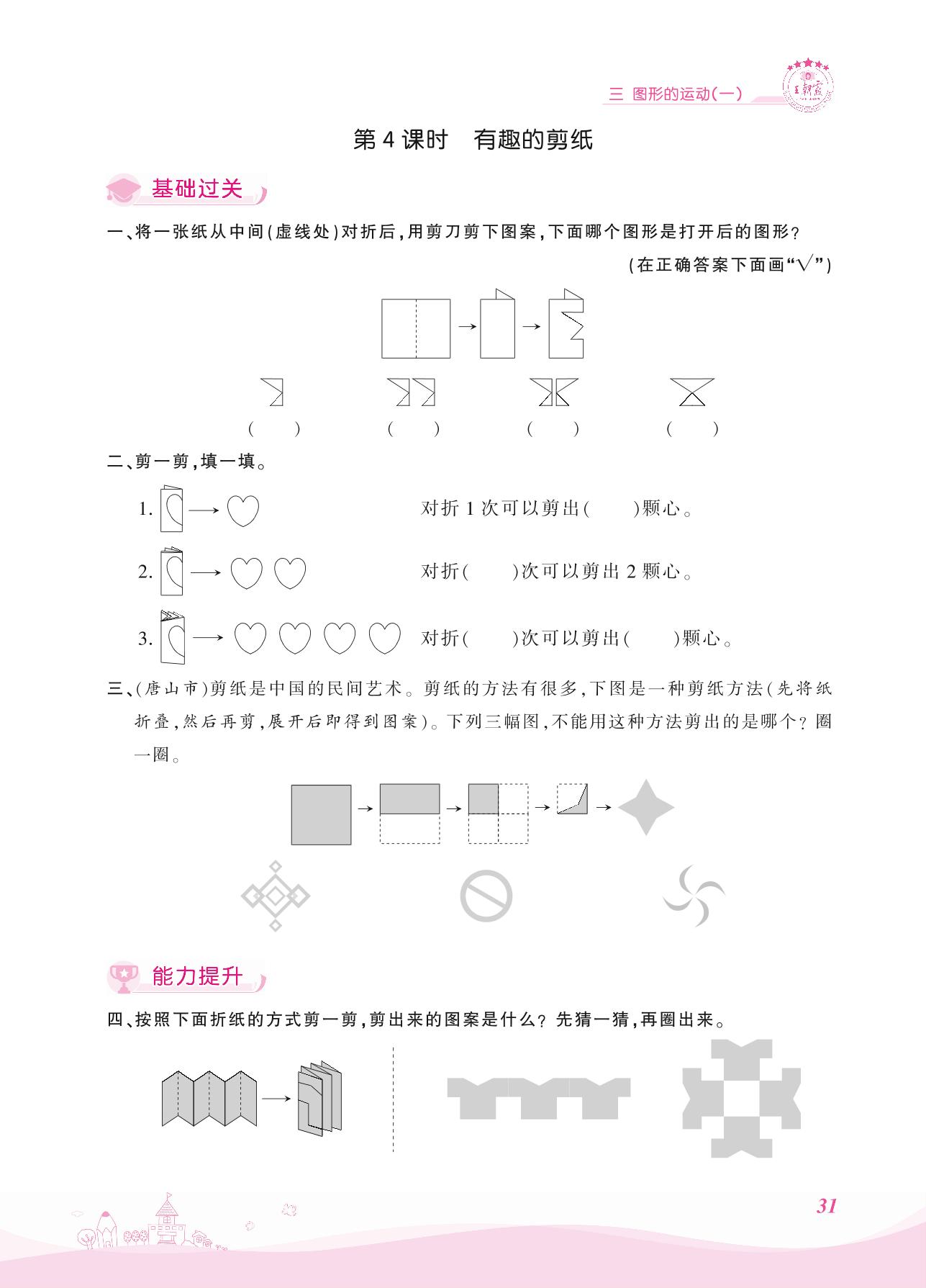 2021上册三年级数学冀教版 三 图形的运动(一)——第4课时 有趣的剪纸