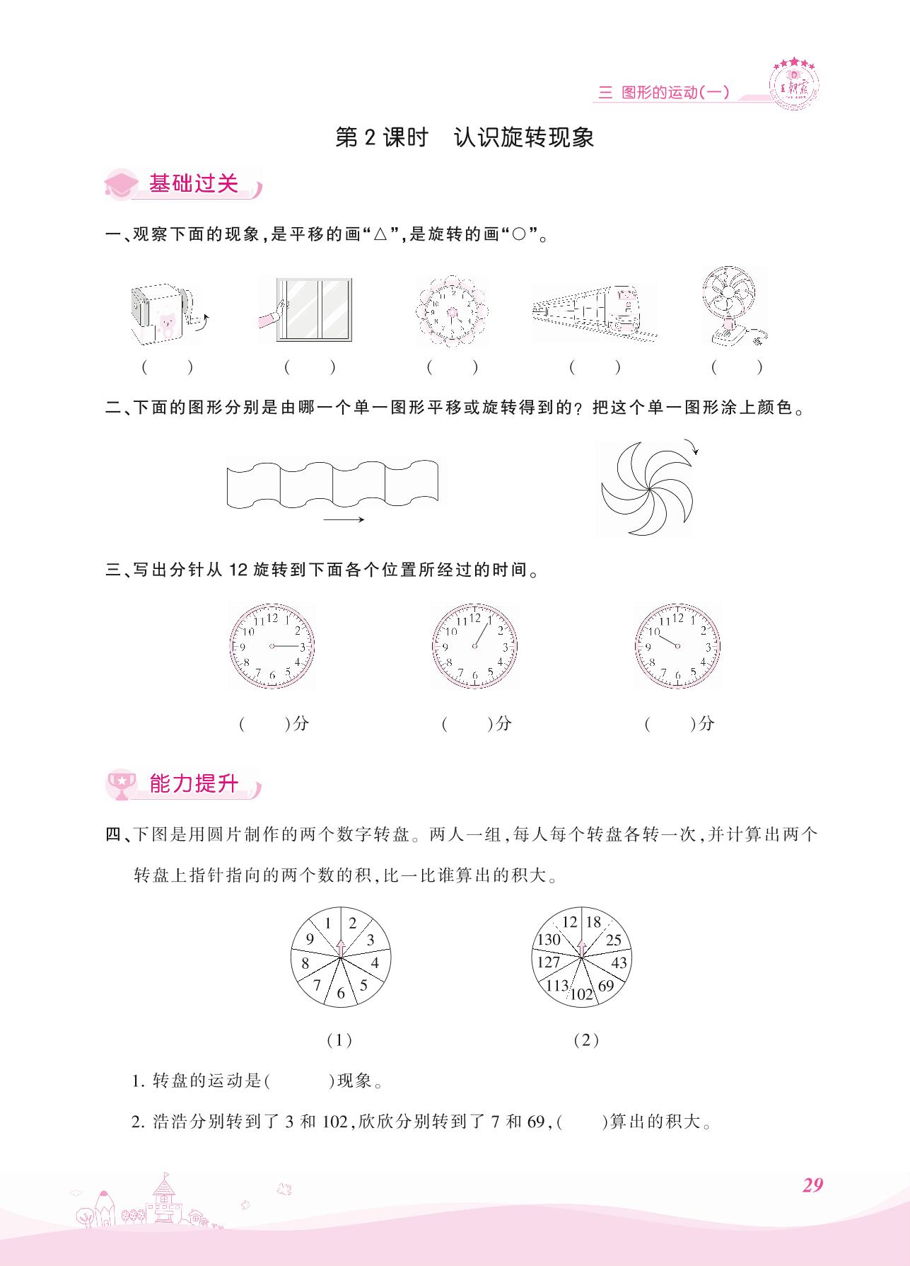 2021上册三年级数学冀教版 三 图形的运动(一)——第2课时 认识旋转现象