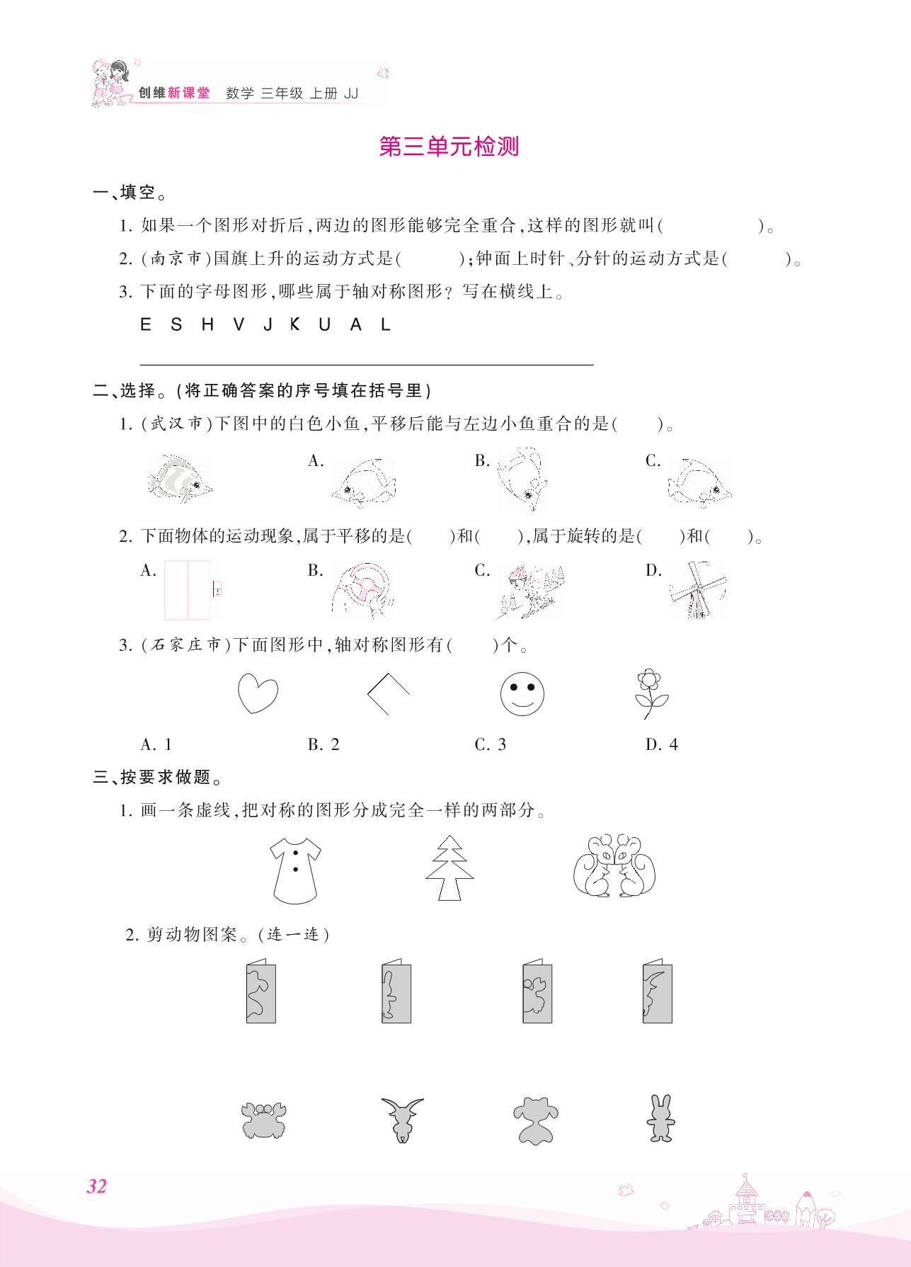 2021上册三年级数学冀教版 三 图形的运动(一)——第三单元检测