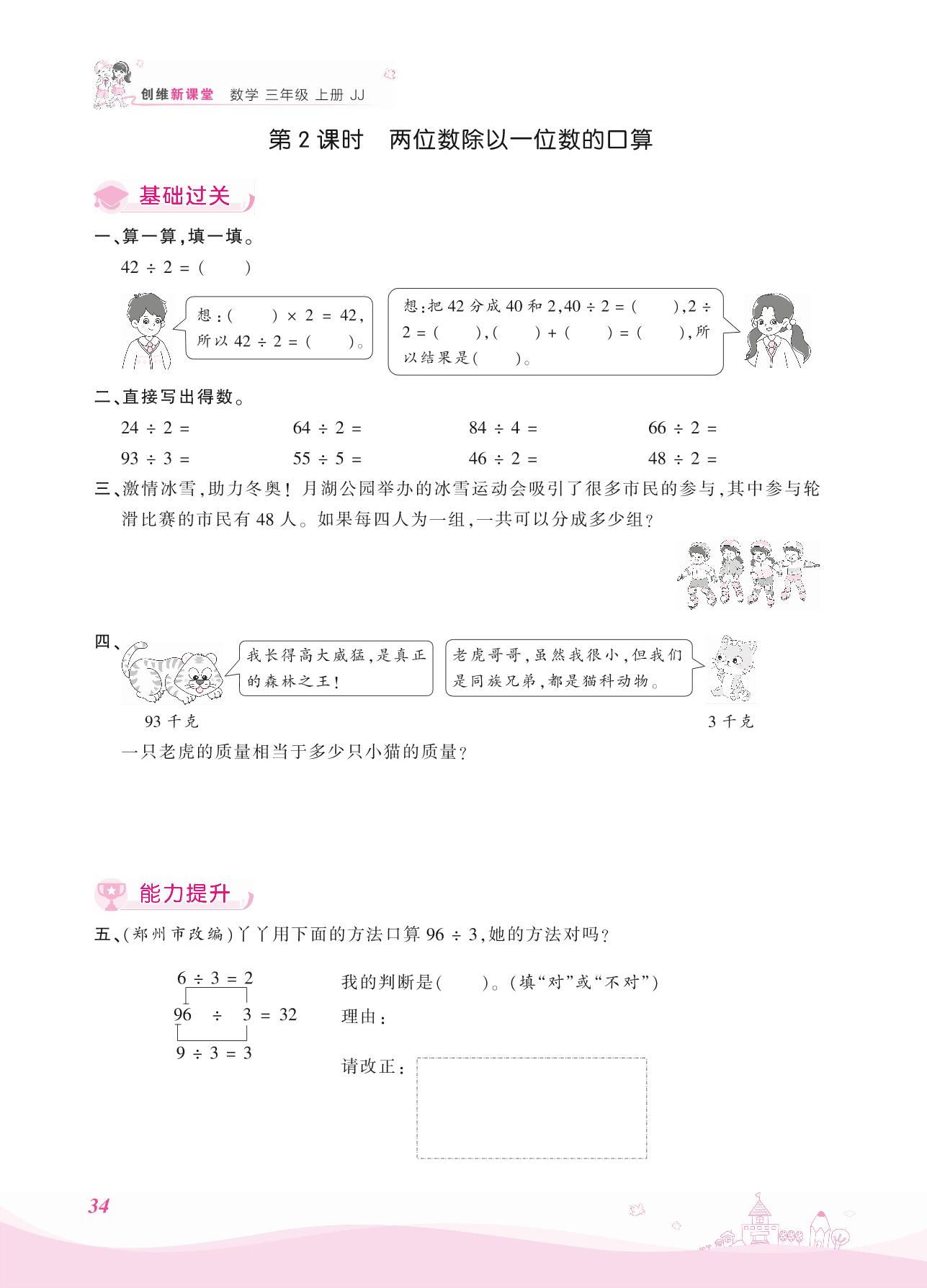 2021上册三年级数学冀教版 四 两、三位数除以一位数——第2课时 两位数除以一位数的口算