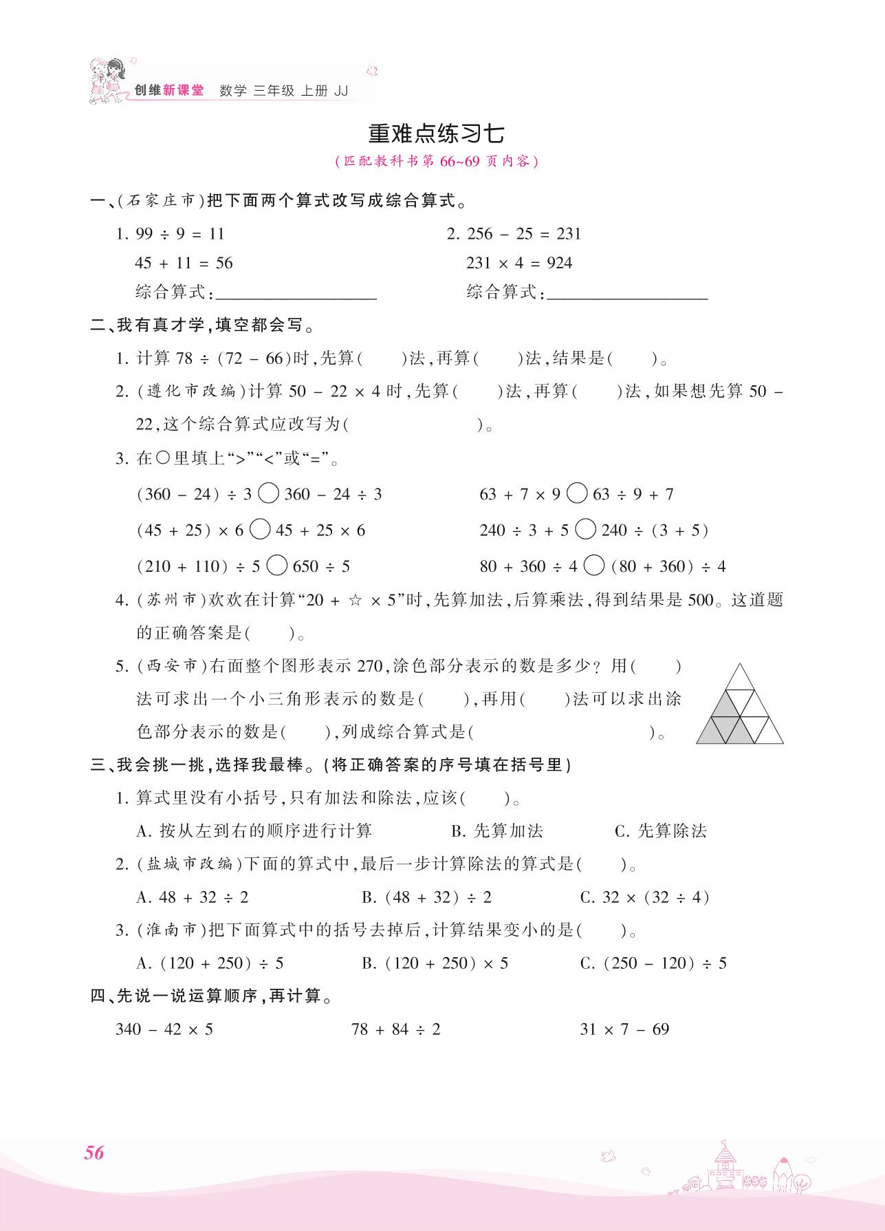 2021上册三年级数学冀教版 五 四则混合运算(一)——重难点练习七