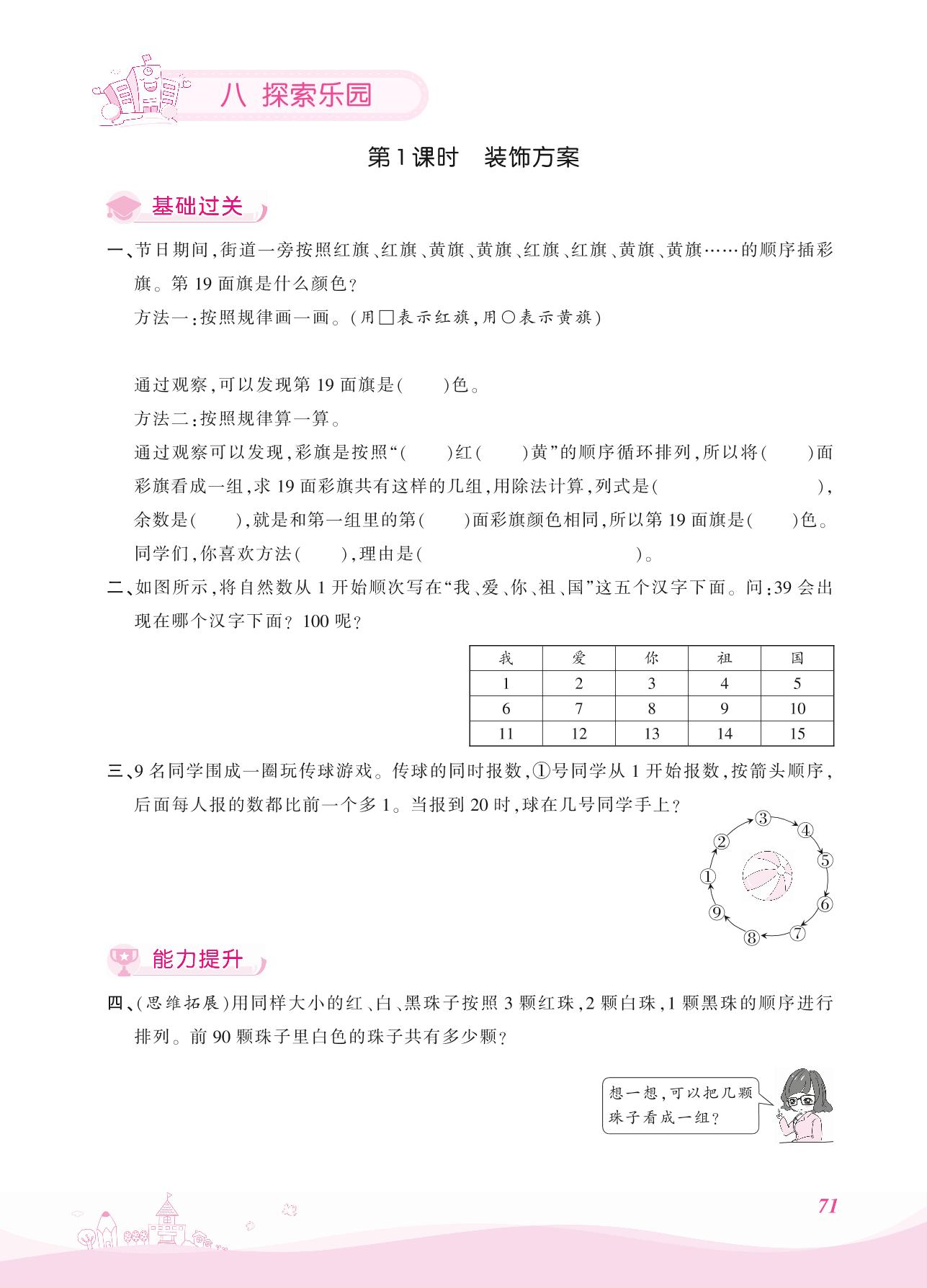 2021上册三年级数学冀教版 八 探索乐园——第1课时 装饰方案