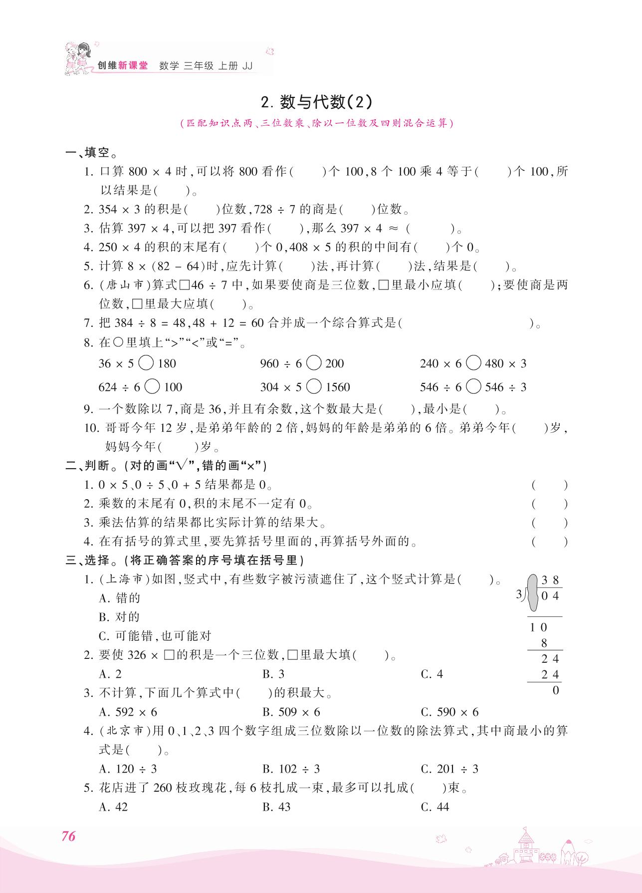 2021上册三年级数学冀教版 整理与评价——2. 数与代数(2)