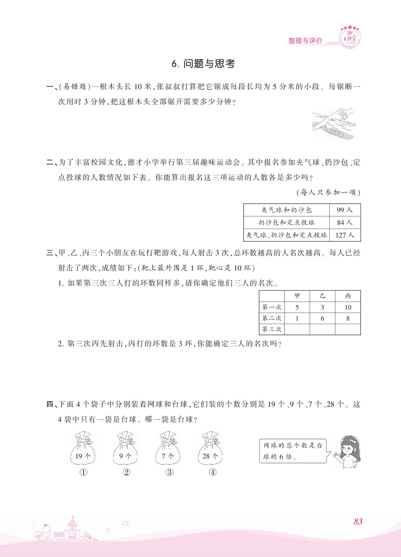 2021上册三年级数学冀教版 整理与评价——6. 问题与思考