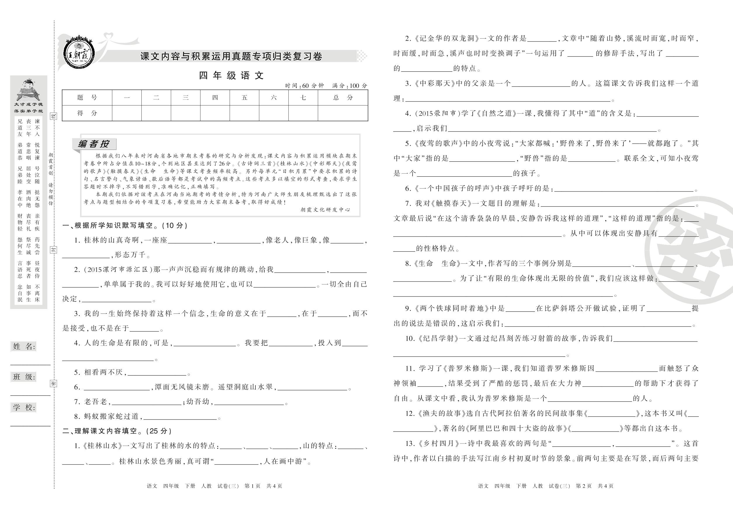 王朝霞期末专项卷四年级下册语文(人教版)_R210801210059【3】