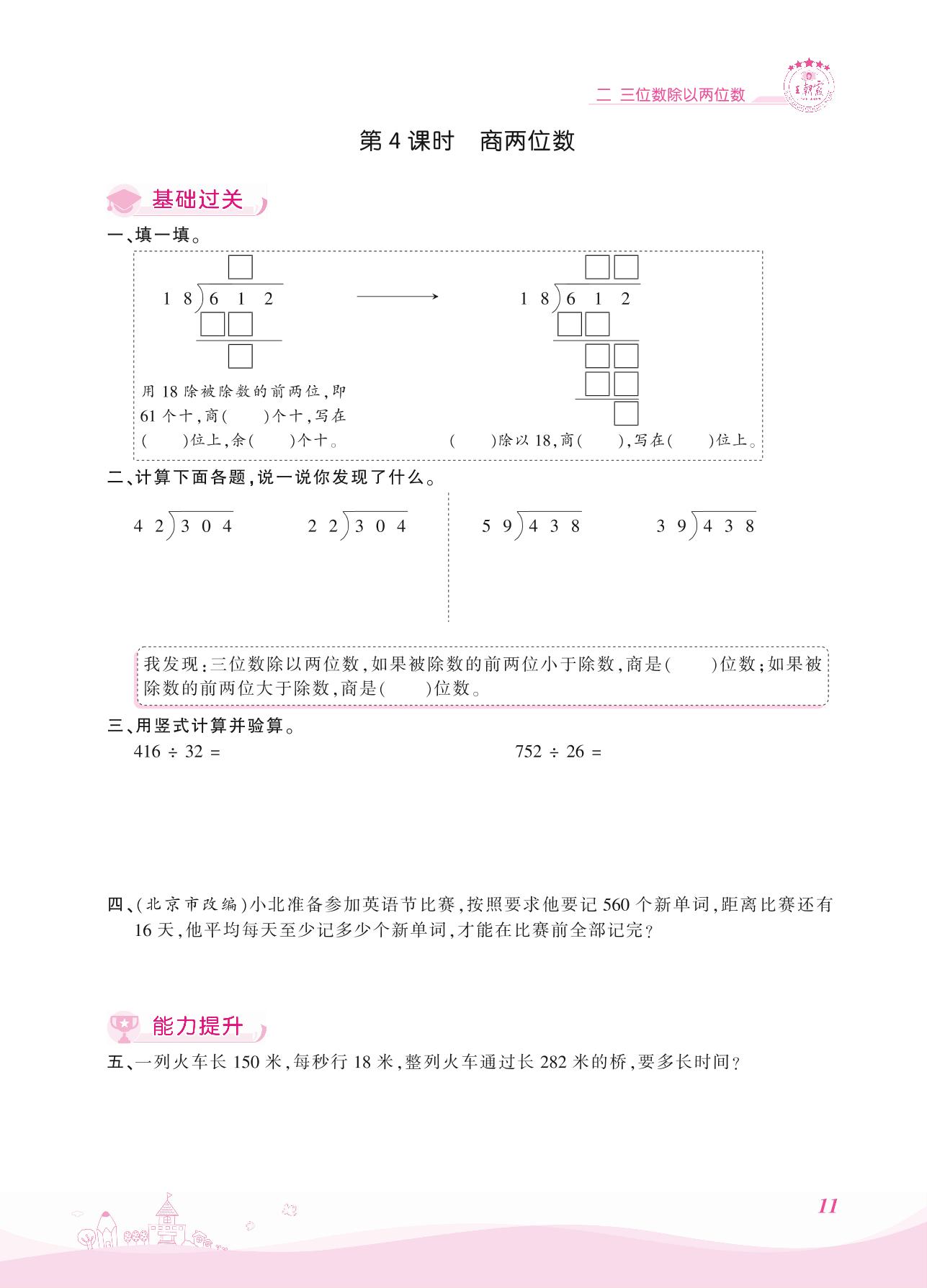 2021上册四年级数学冀教版 二 三位数除以两位数 2. 除以两位数——第4课时 商两位数