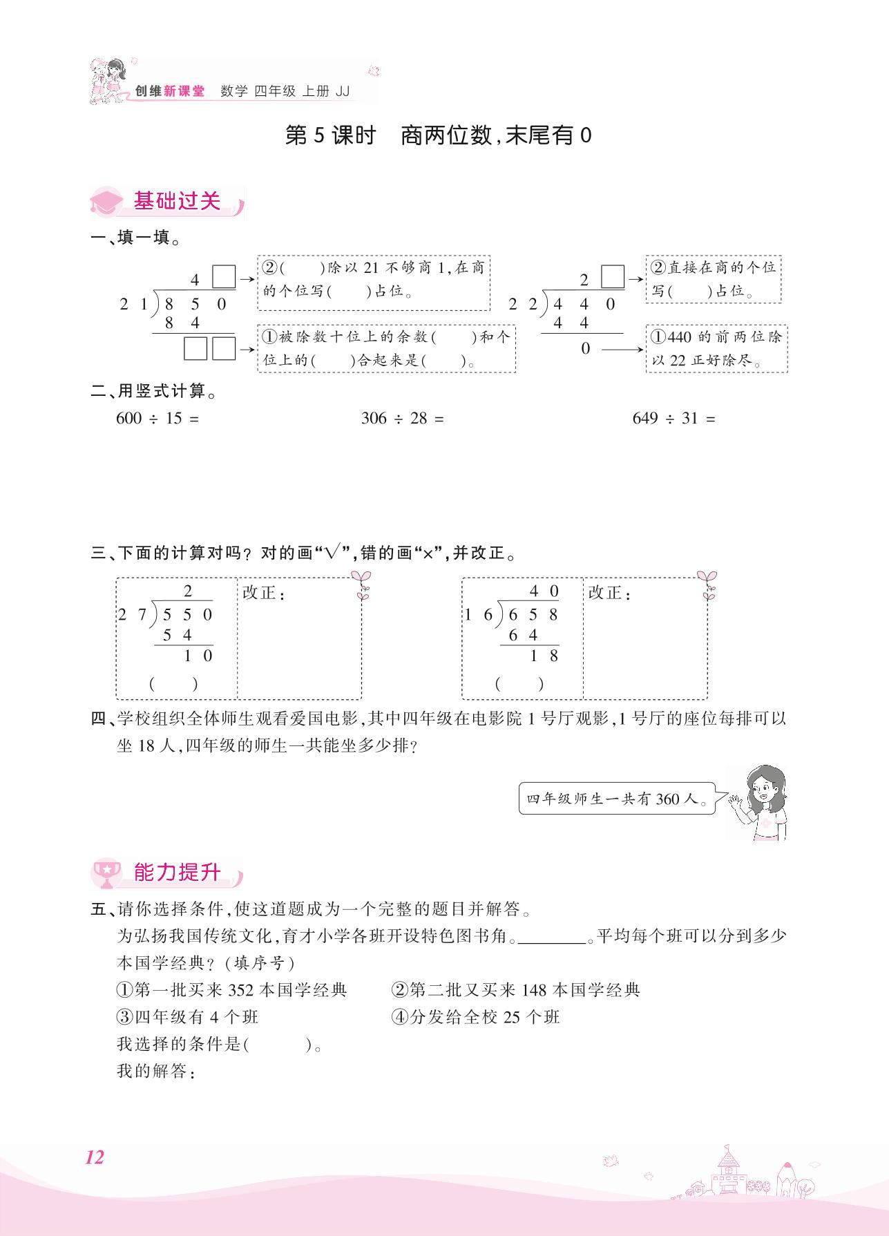 2021上册四年级数学冀教版 二 三位数除以两位数 2. 除以两位数——第5课时 商两位数,末尾有0 12