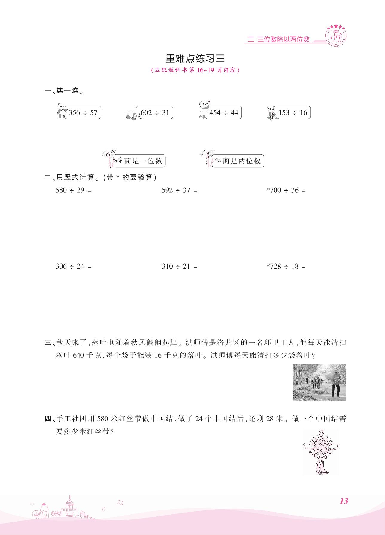 2021上册四年级数学冀教版 二 三位数除以两位数——重难点练习三