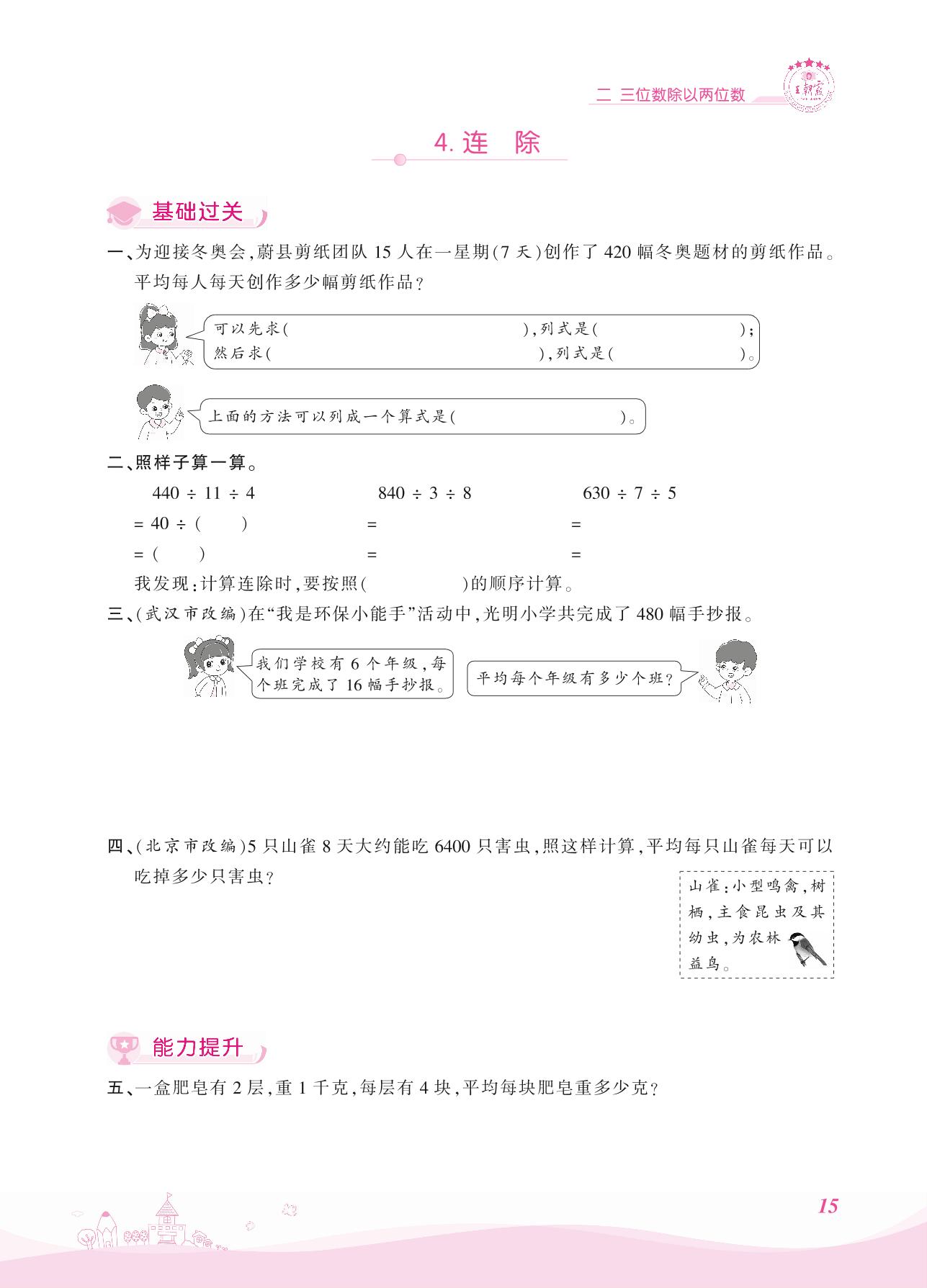 2021上册四年级数学冀教版 二 三位数除以两位数 4. 连除