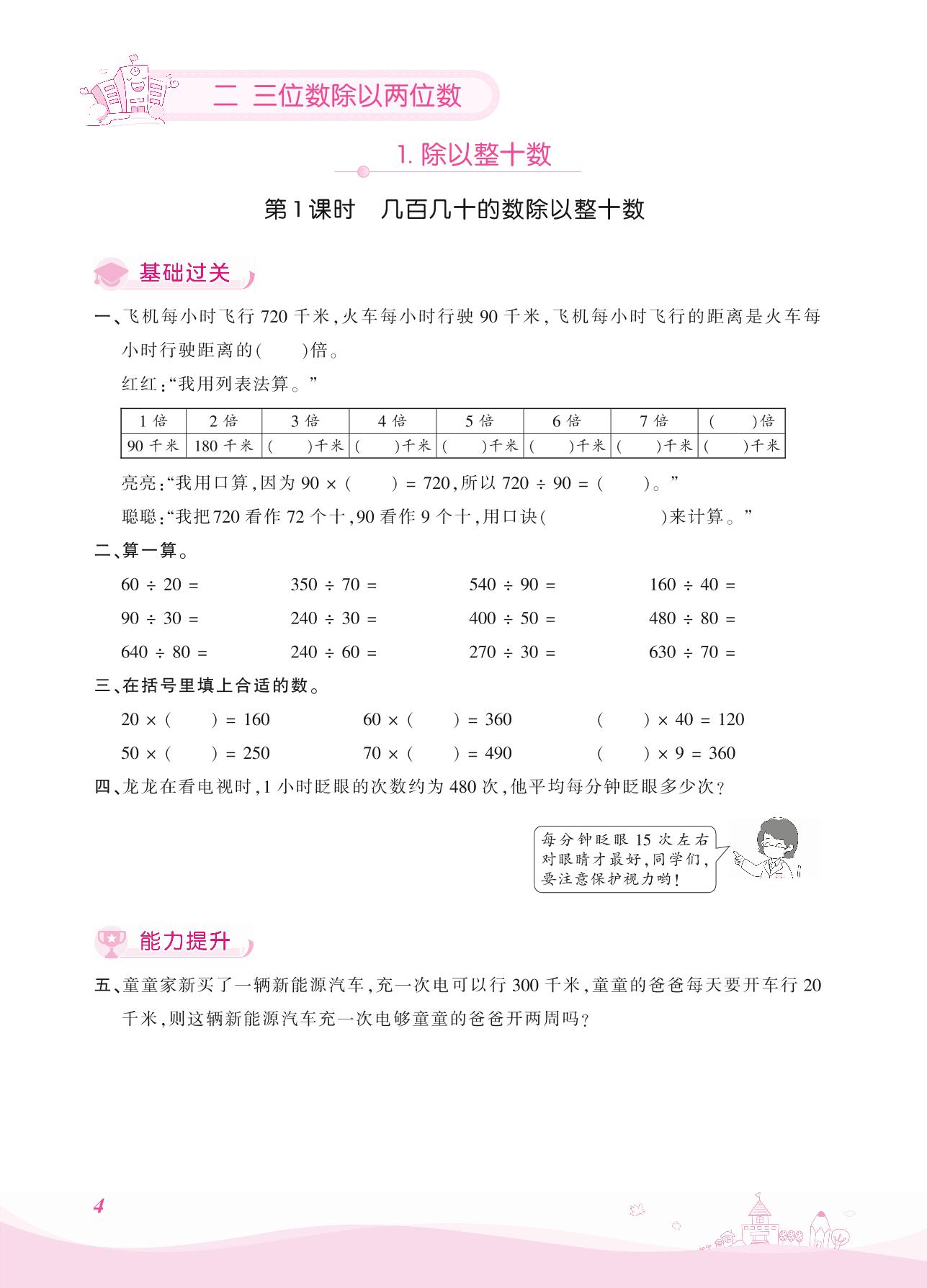 2021上册四年级数学冀教版 二 三位数除以两位数 1. 除以整十数——第1课时 几百几十的数除以整十数