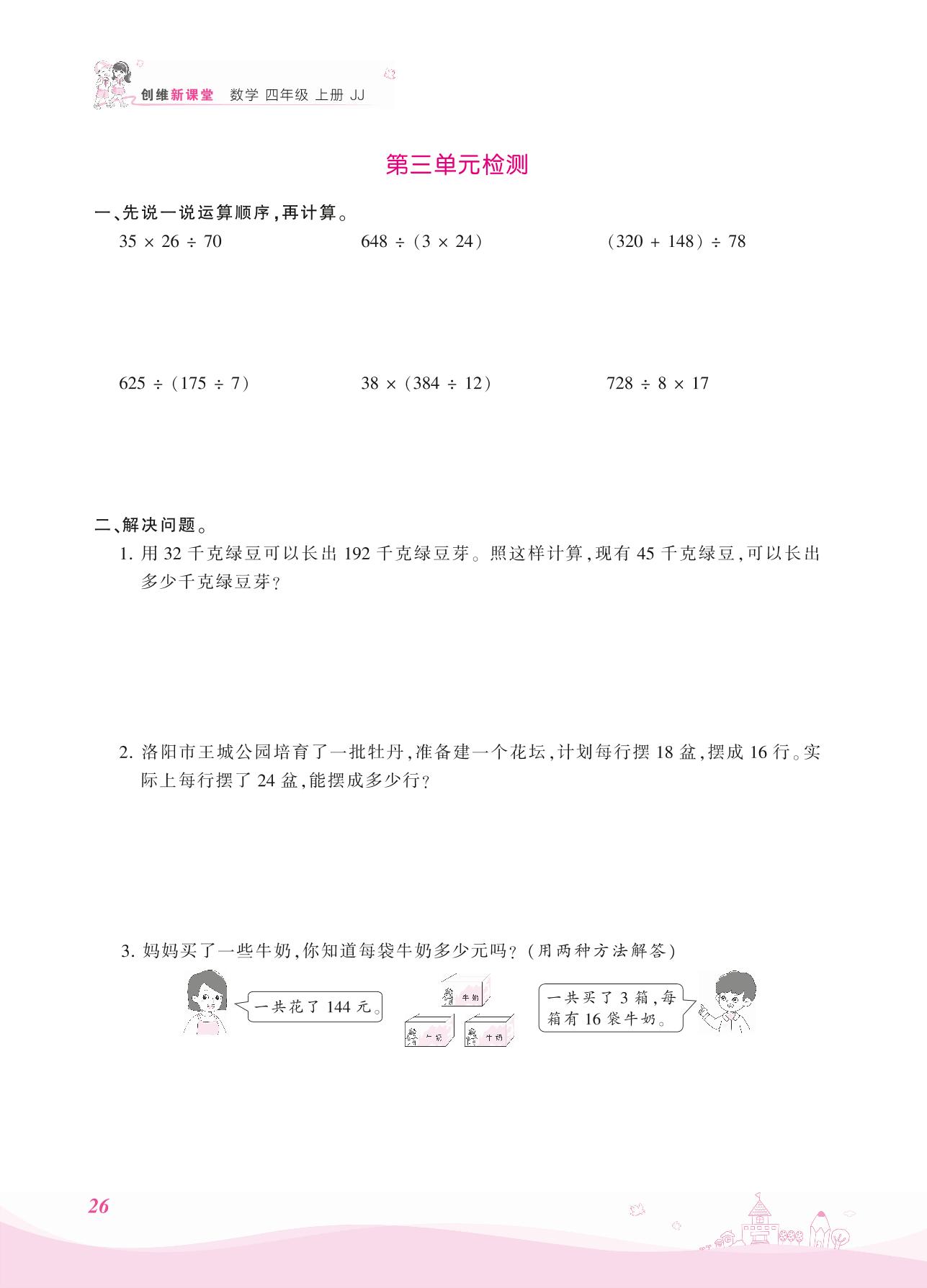 2021上册四年级数学冀教版 三 解决问题——第三单元检测