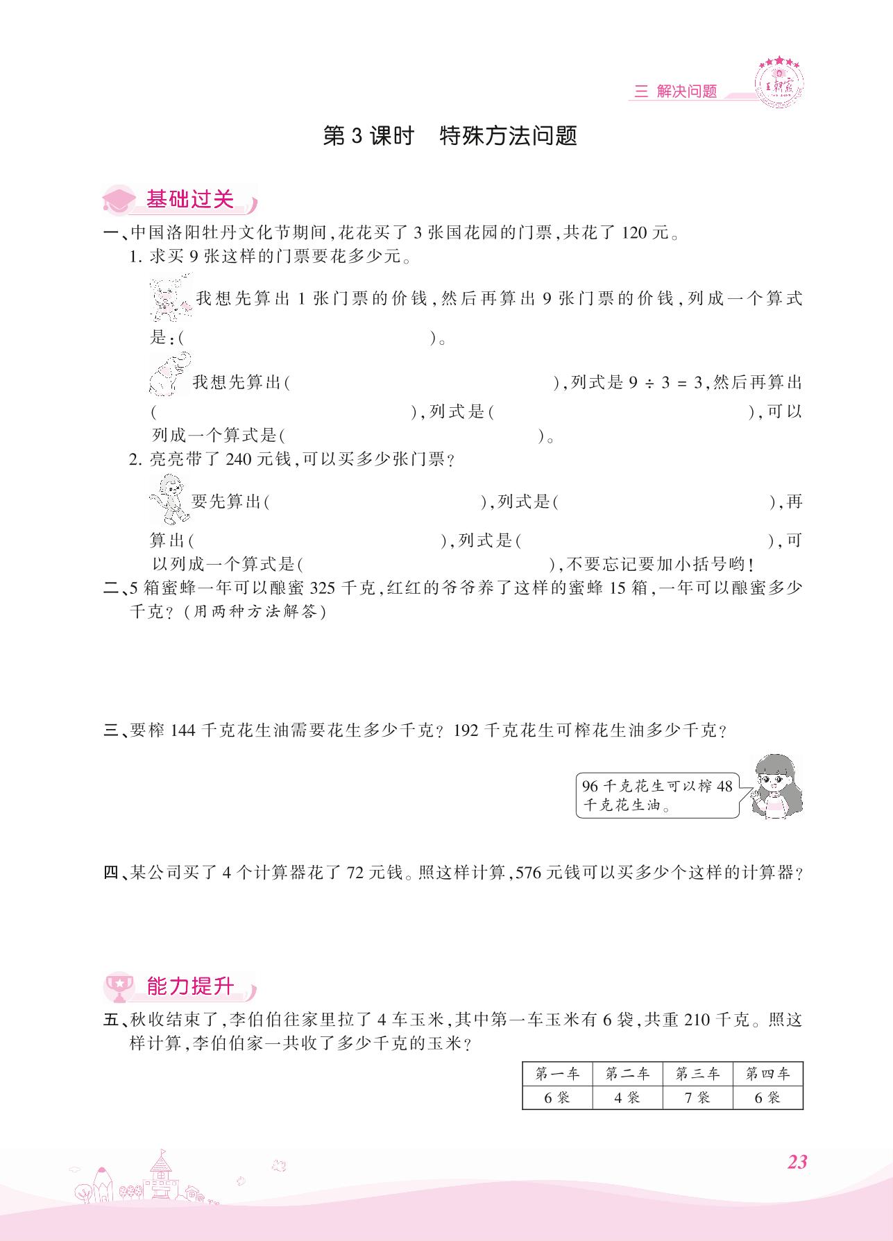 2021上册四年级数学冀教版 三 解决问题——第3课时 特殊方法问题