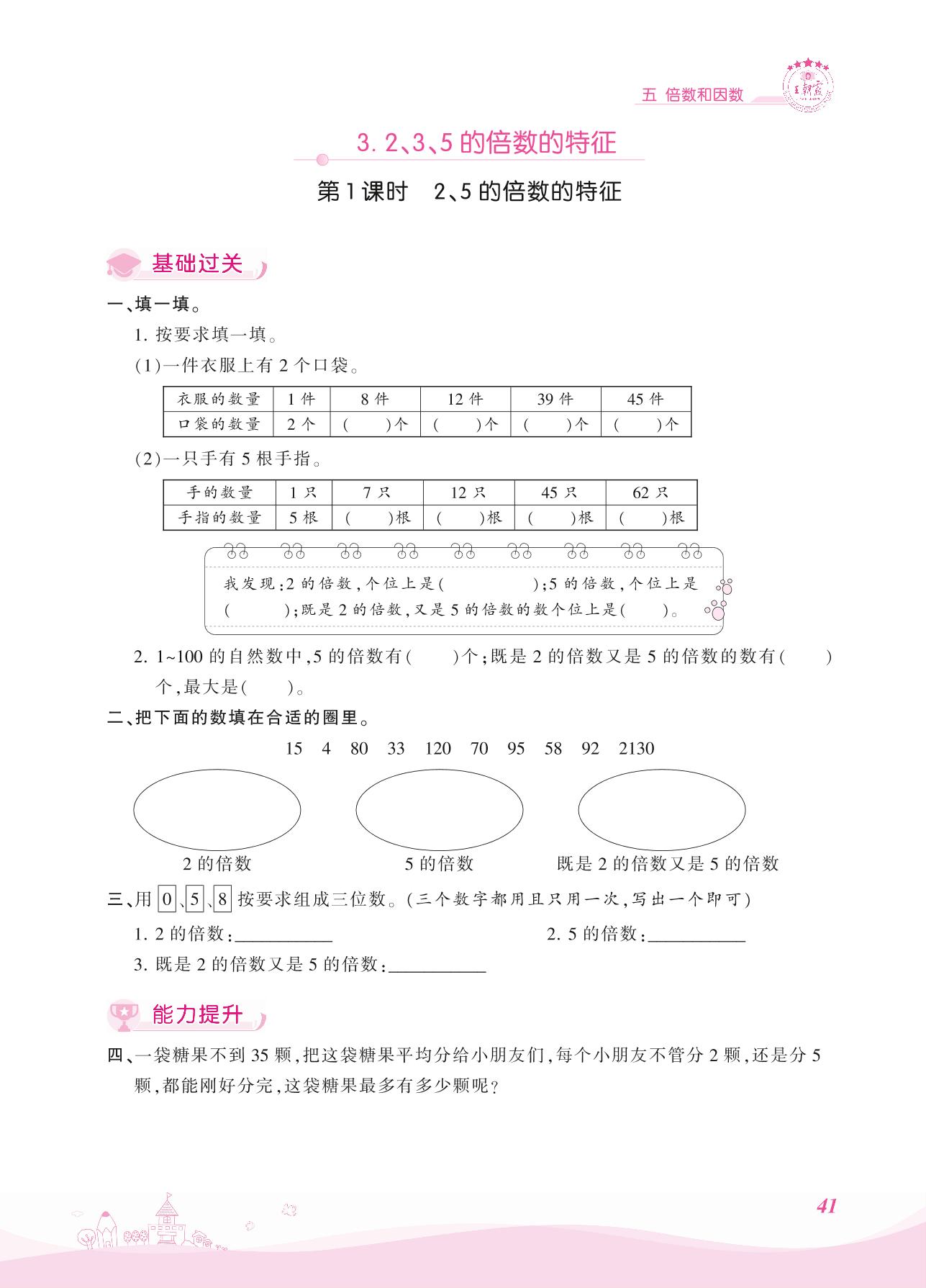 2021上册四年级数学冀教版 五 倍数和因数 3. 2、3、5的倍数的特征——第1课时 2、5的倍数的特征
