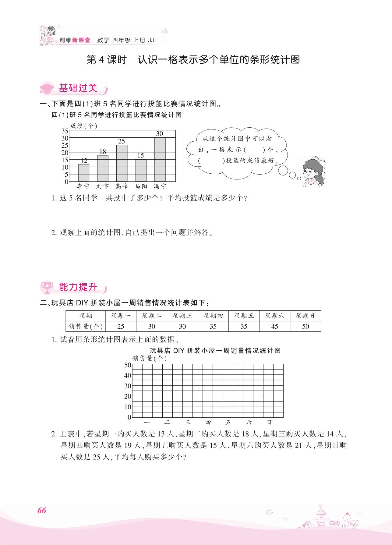2021上册四年级数学冀教版 八 平均数和条形统计图——第4课时 认识一格表示多个单位的条形统计图