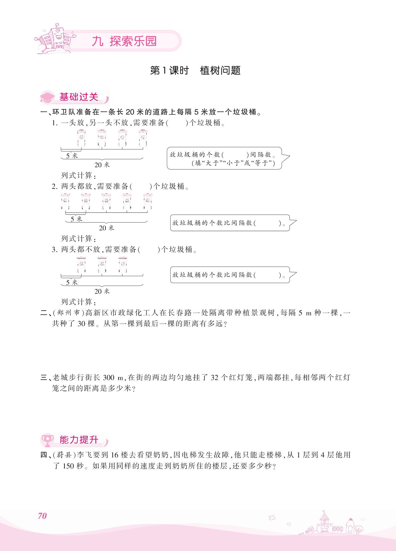 2021上册四年级数学冀教版 九 探索乐园——第1课时 植树问题