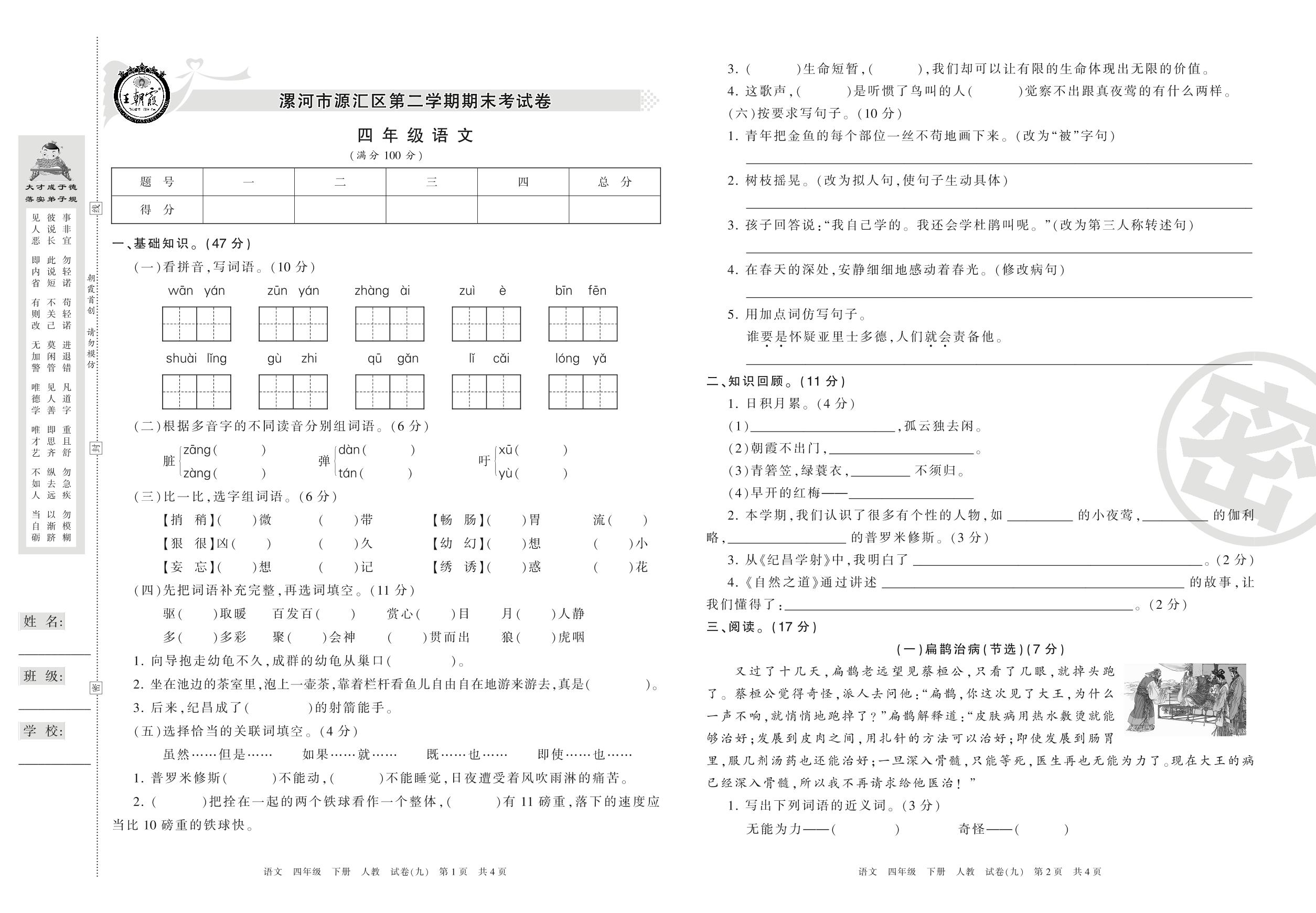 四年级语文人教版下册期末卷