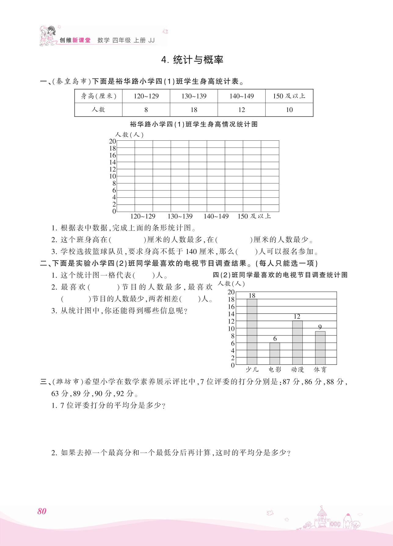 2021上册四年级数学冀教版 整理与评价——4. 统计与概率