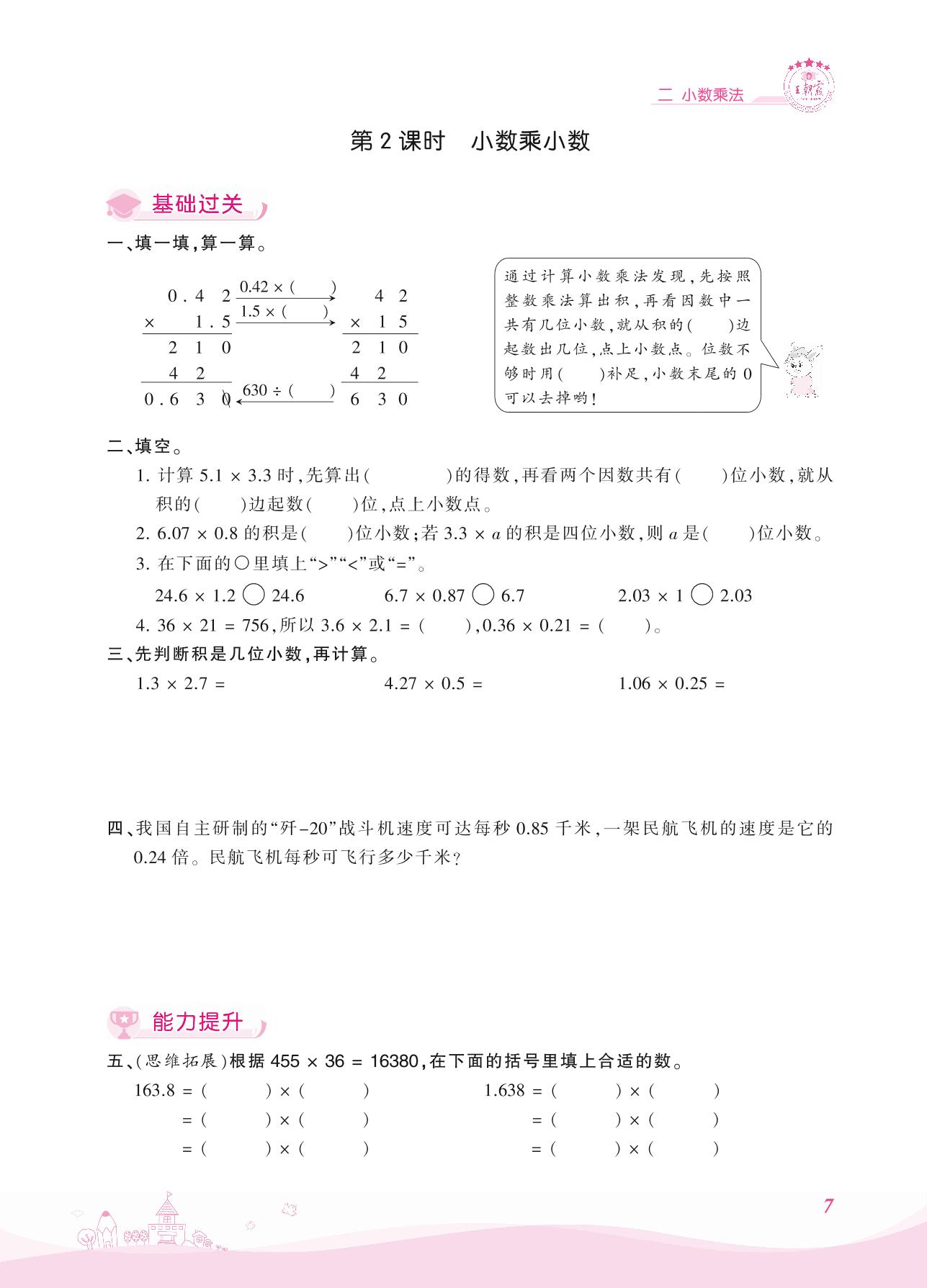 2021上册五年级数学冀教版 二 小数乘法 2. 小数乘法——第2课时 小数乘小数