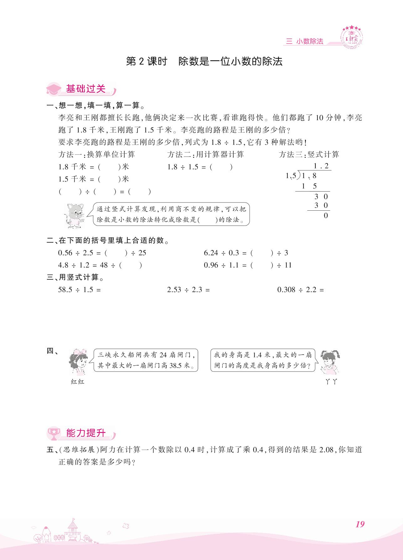 2021上册五年级数学冀教版 三 小数除法 1. 小数除法——第2课时 除数是一位小数的除法
