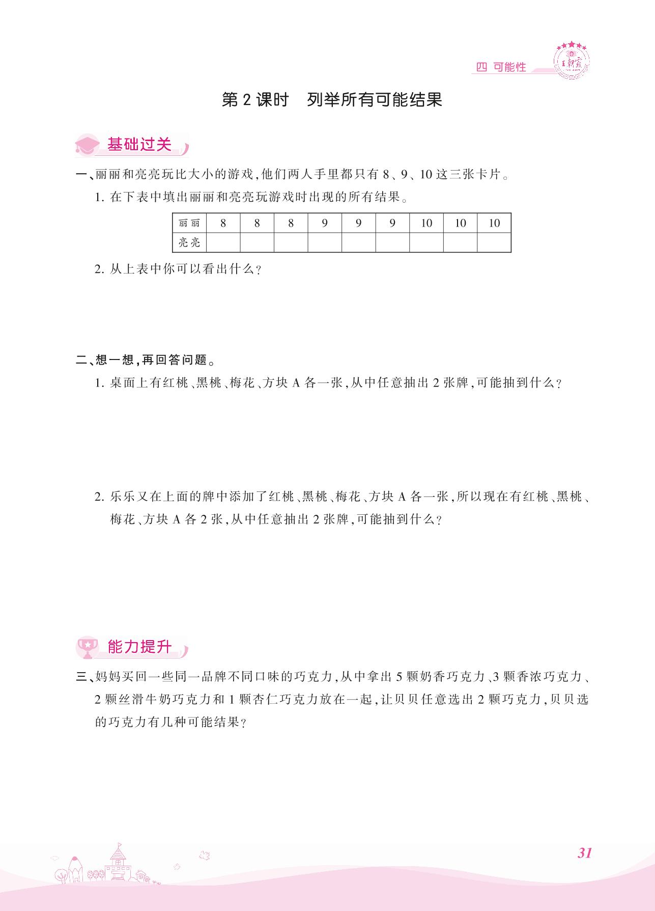 2021上册五年级数学冀教版 四 可能性——第2课时 列举所有可能结果