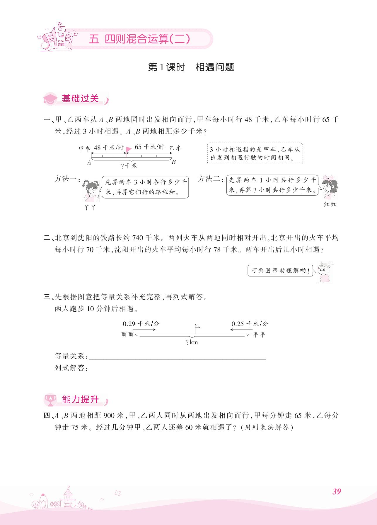 2021上册五年级数学冀教版 五 四则混合运算(二)——第1课时 相遇问题