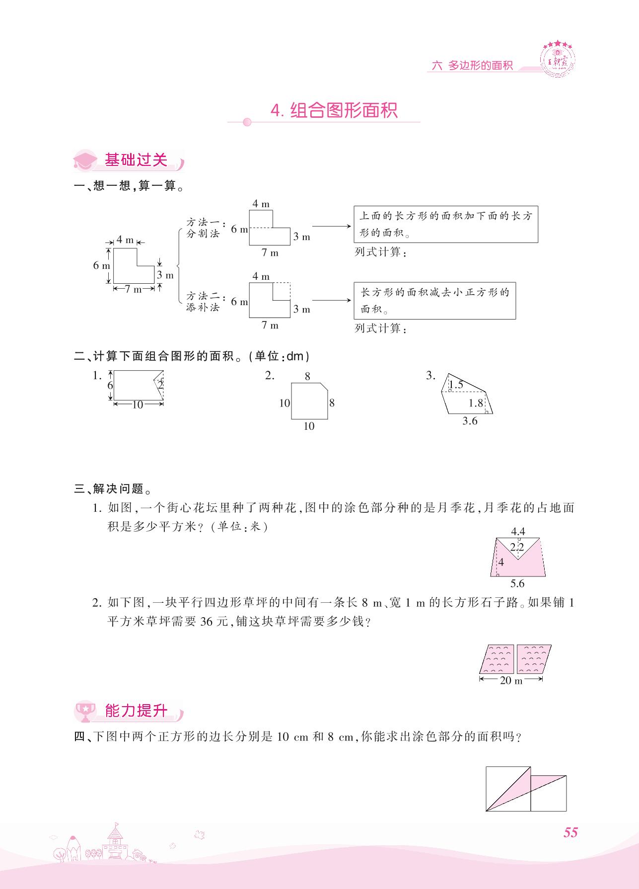 2021上册五年级数学冀教版 六 多边形的面积 4. 组合图形面积