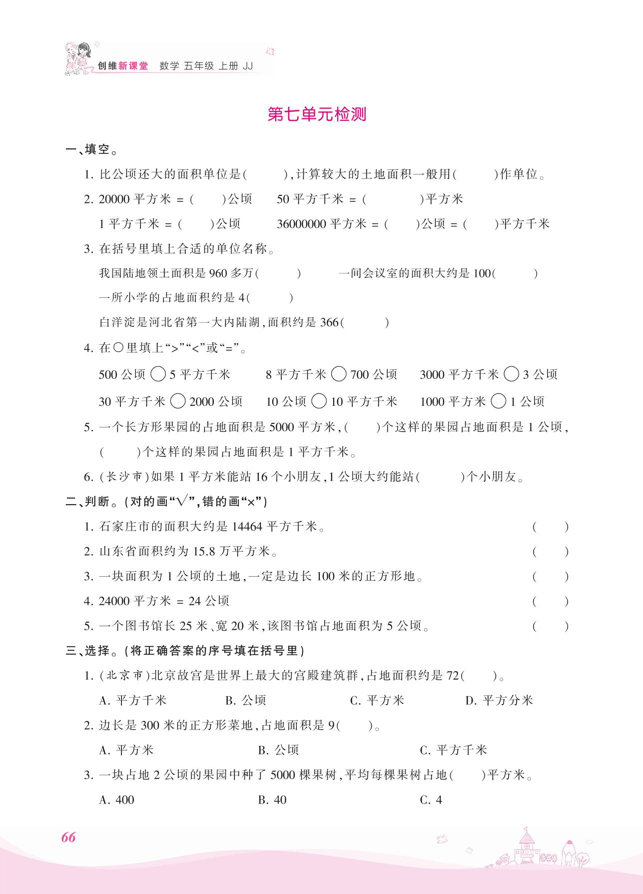 2021上册五年级数学冀教版 七 土地的面积——第七单元检测