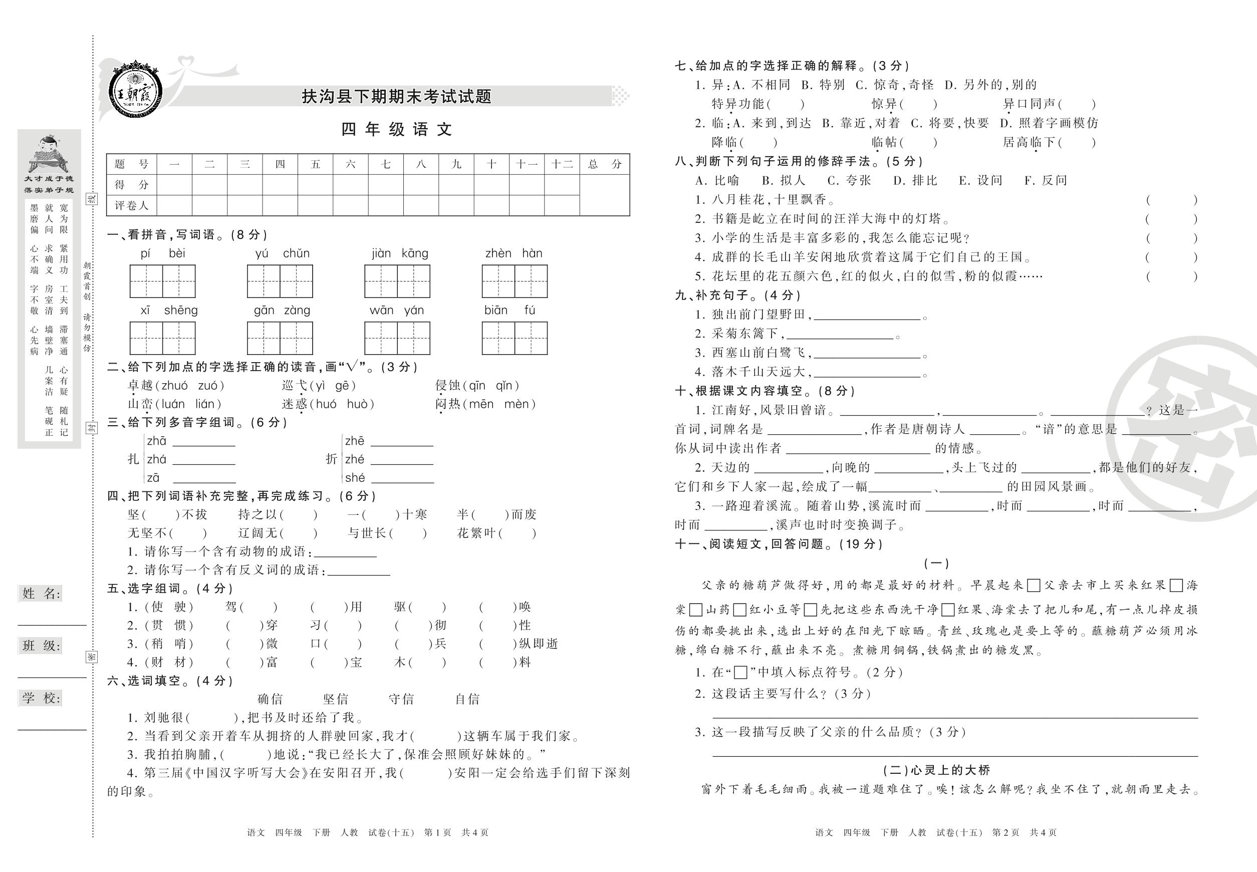 2015-2016学年第二学期周口市扶沟县四年级语文试卷(人教版)【15】