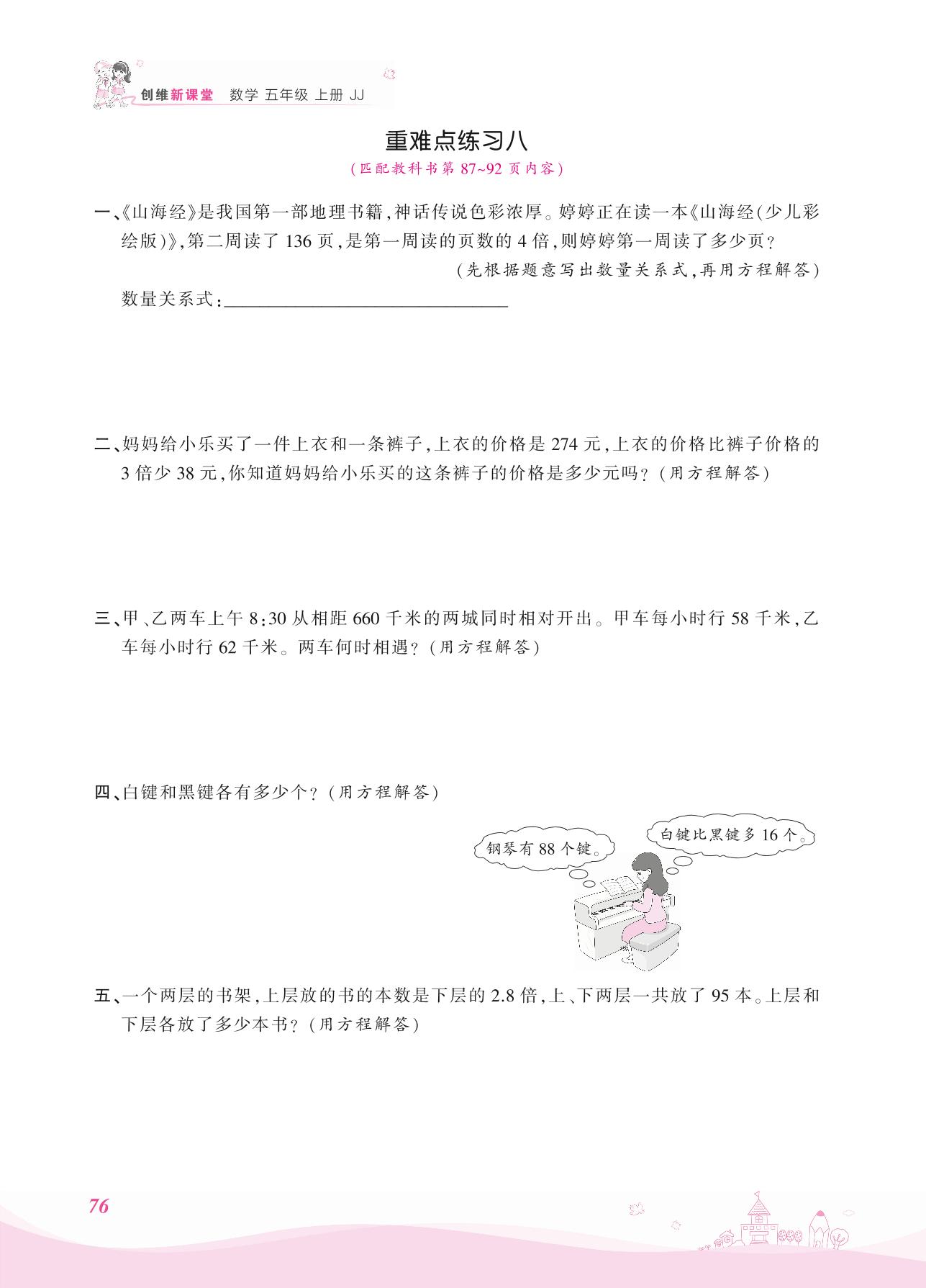 2021上册五年级数学冀教版 八 方程——重难点练习八