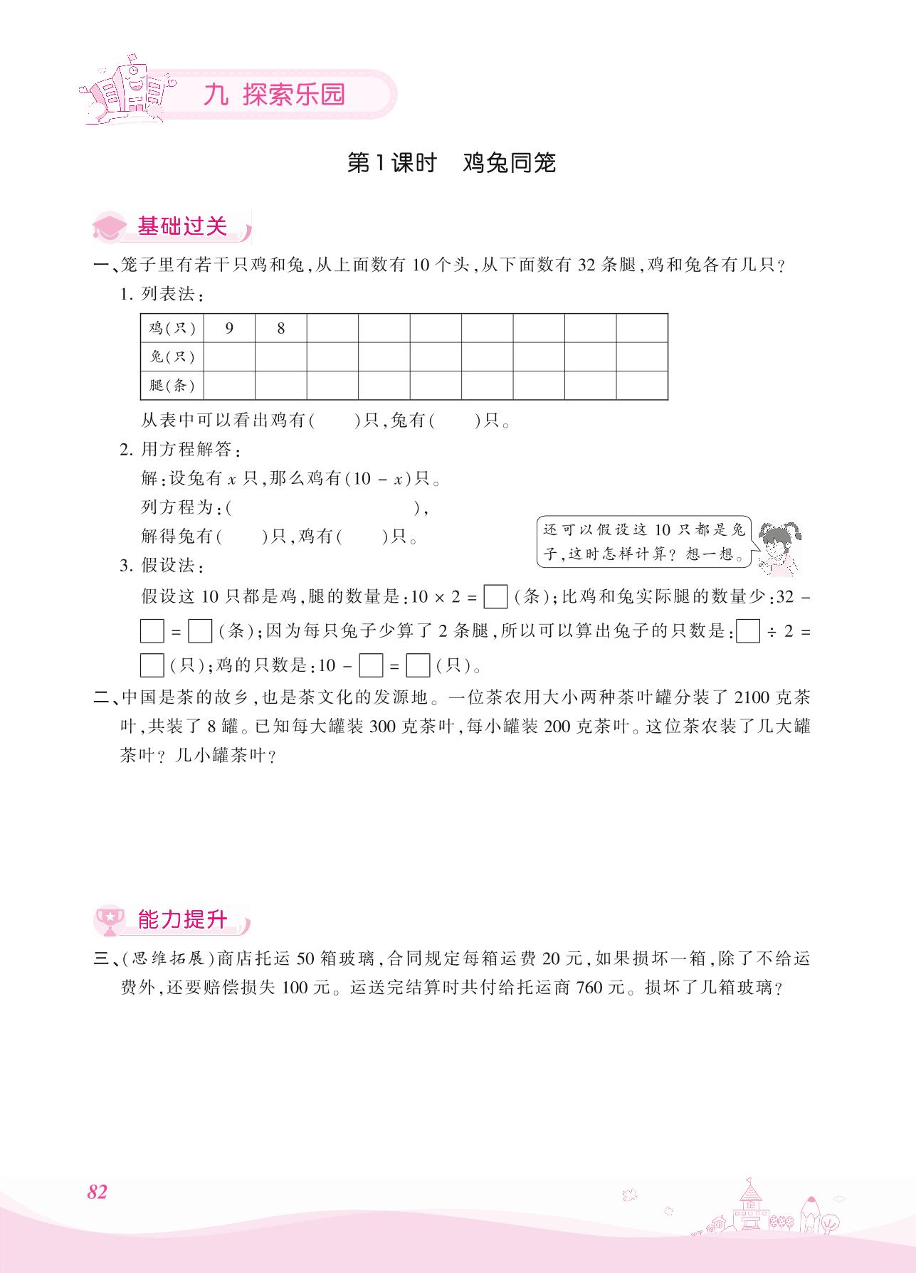2021上册五年级数学冀教版 九 探索乐园——第1课时 鸡兔同笼