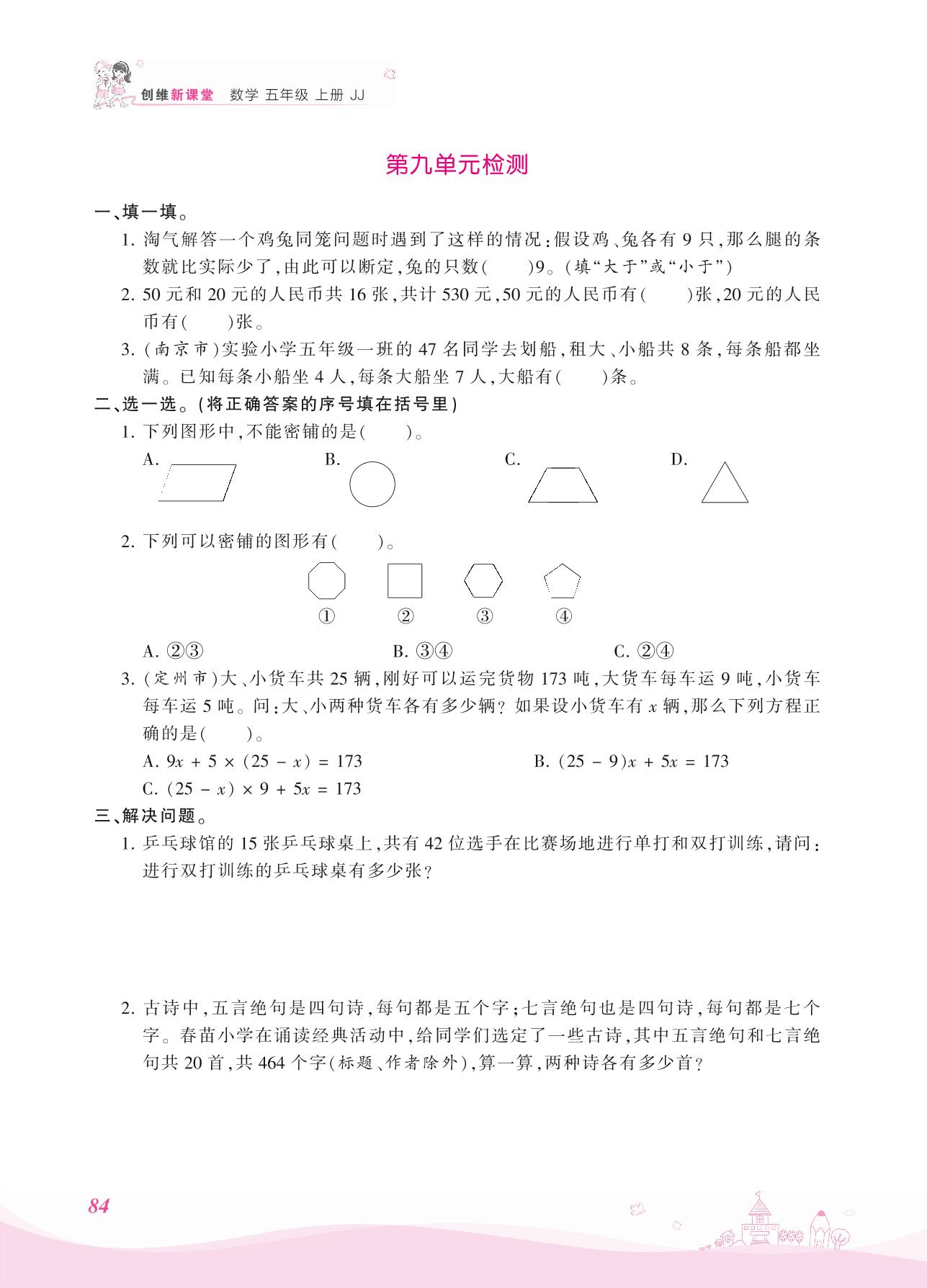 2021上册五年级数学冀教版 九 探索乐园——第九单元检测