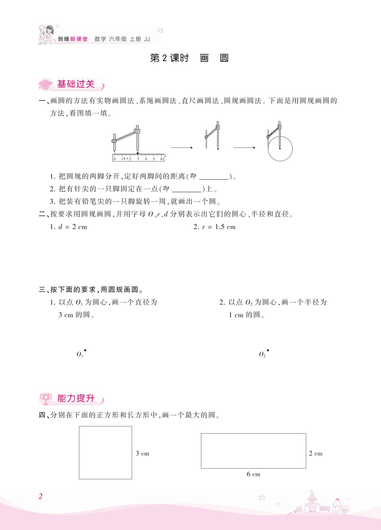 2021上册六年级数学冀教版 一 圆和扇形——第2课时 画圆