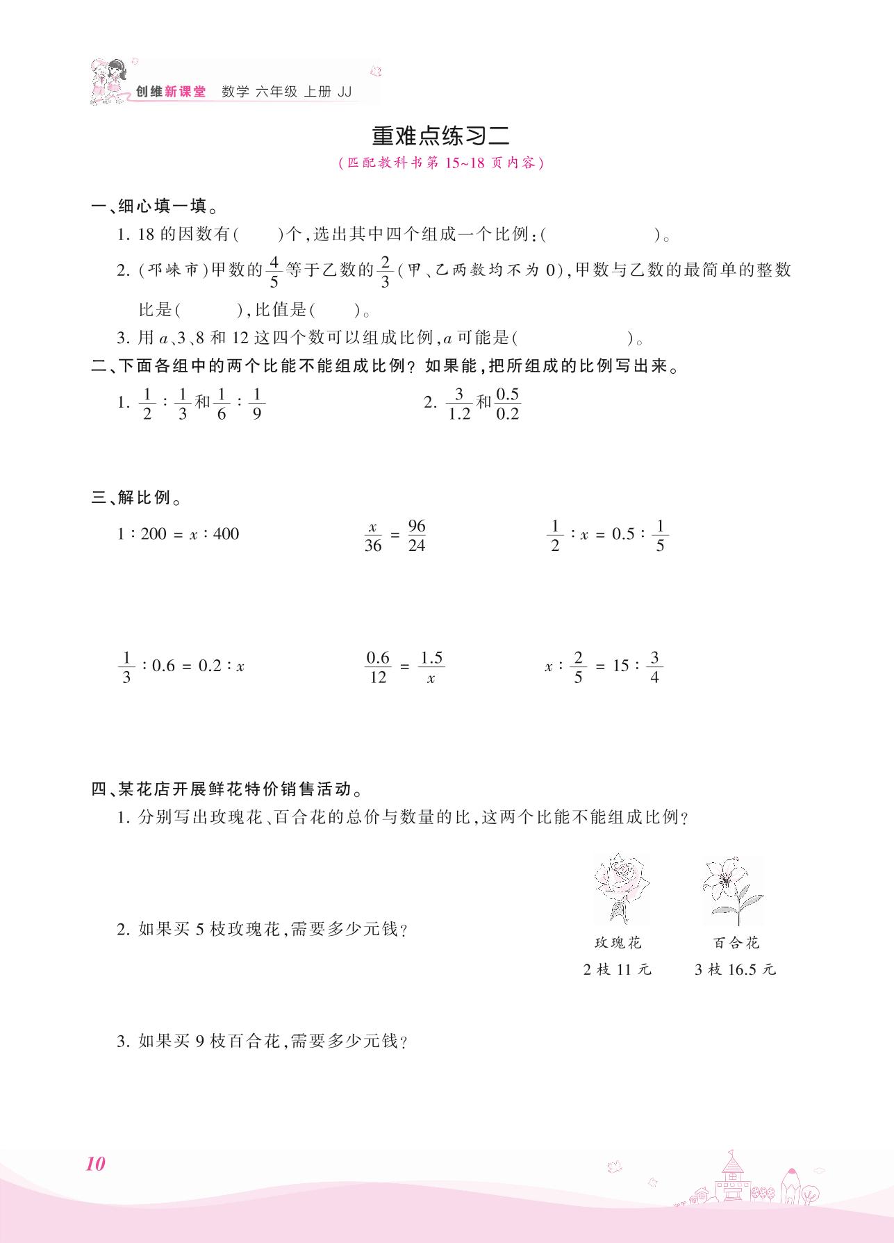 2021上册六年级数学冀教版 二 比和比例——重难点练习二