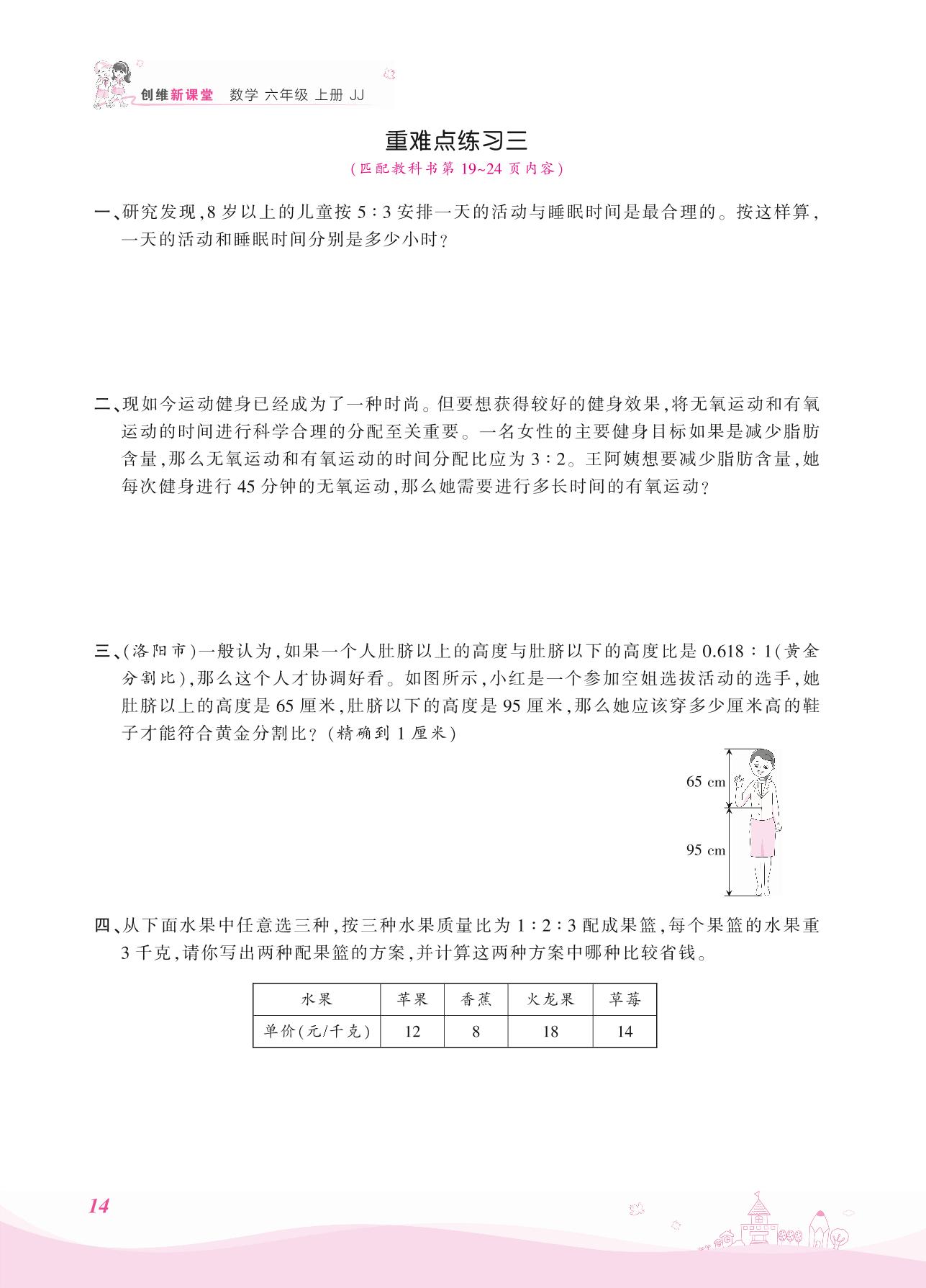 2021上册六年级数学冀教版 二 比和比例——重难点练习三