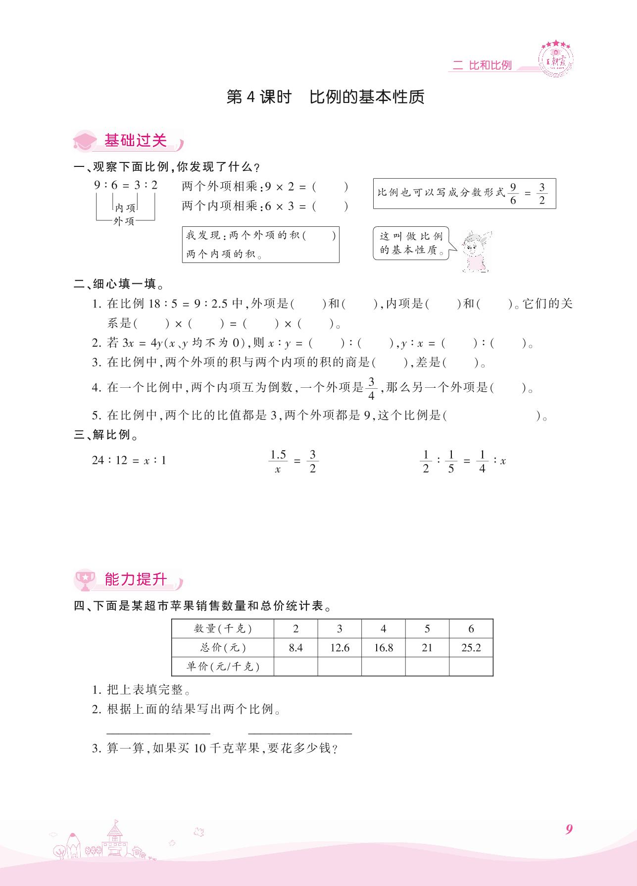 2021上册六年级数学冀教版 二 比和比例——第4课时 比例的基本性质